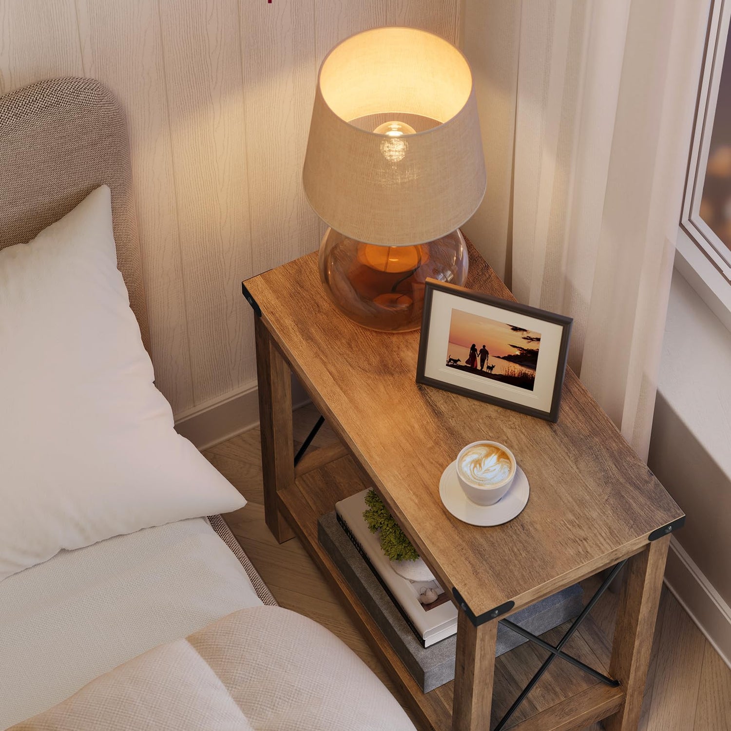 - 【FARMHOUSE CHARM】This end table features honey brown panels, complemented by metal X-bars and corner accents, adding a cozy and inviting farmhouse vibe to your living space