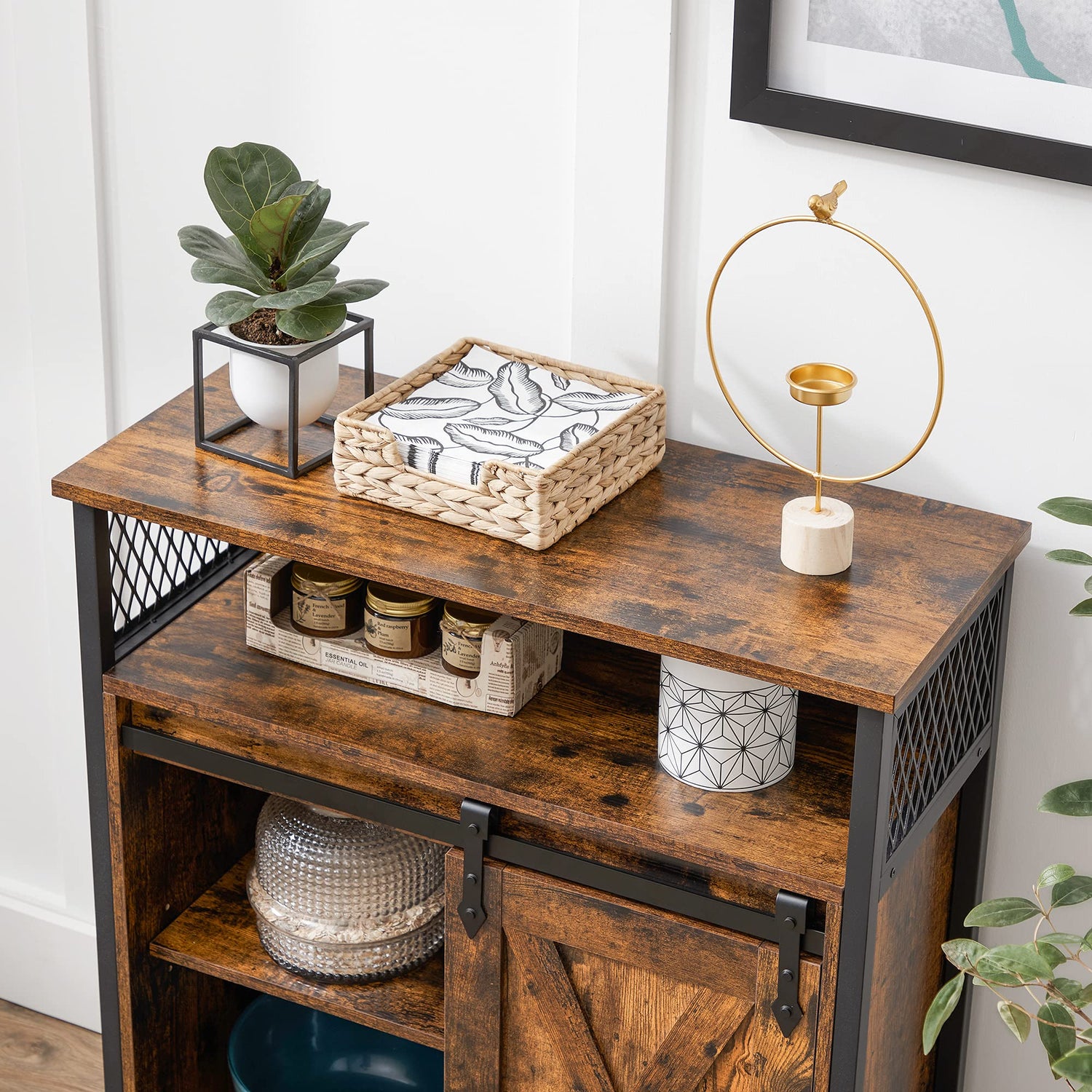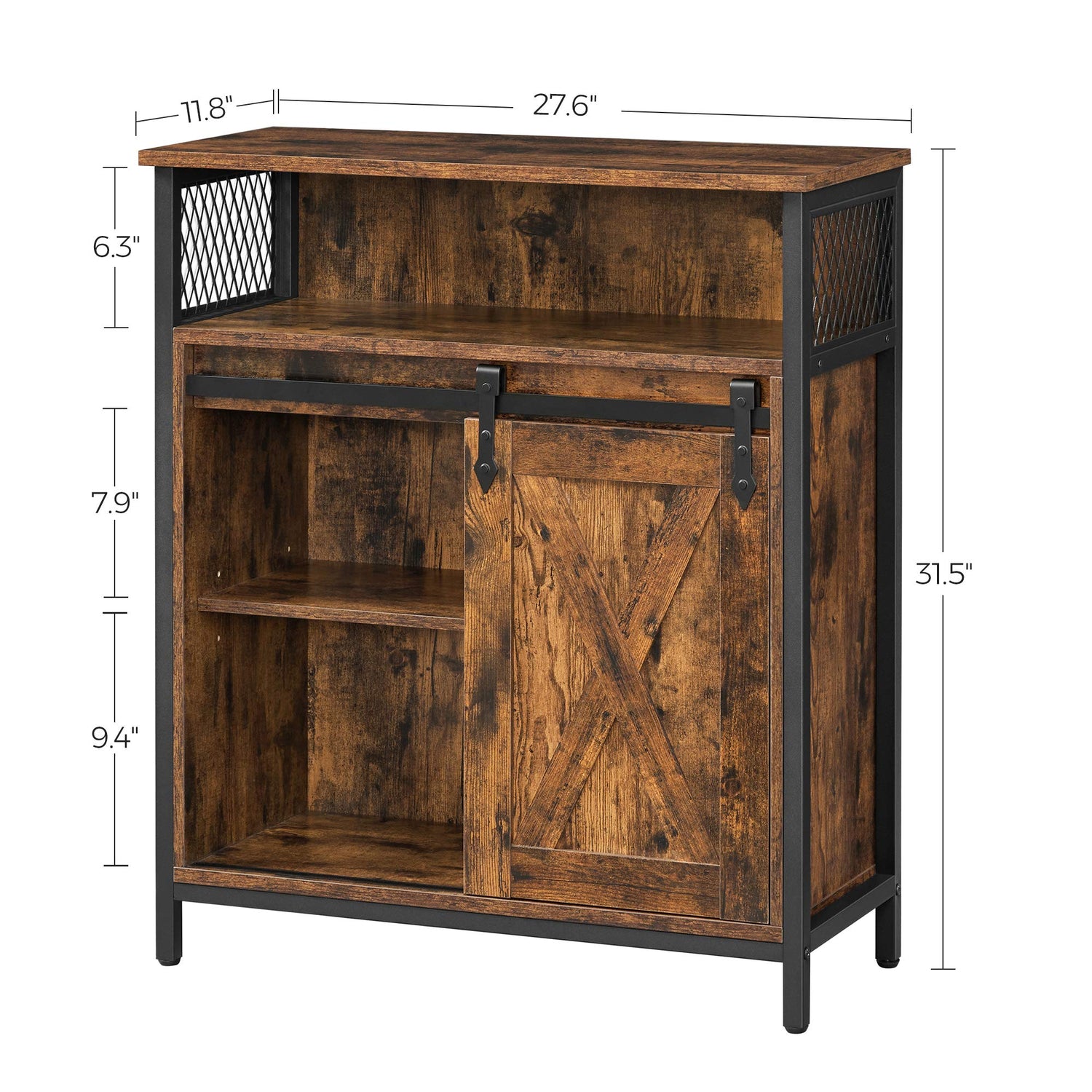 VASAGLE Buffet Cabinet, Coffee Bar Storage Cabinet, Sideboard with 1 Sliding Barn Door, Adjustable Shelves, 11.8 x 27.6 x 31.5 Inches, for Living Room, Rustic Brown and Ink Black ULSC089B01