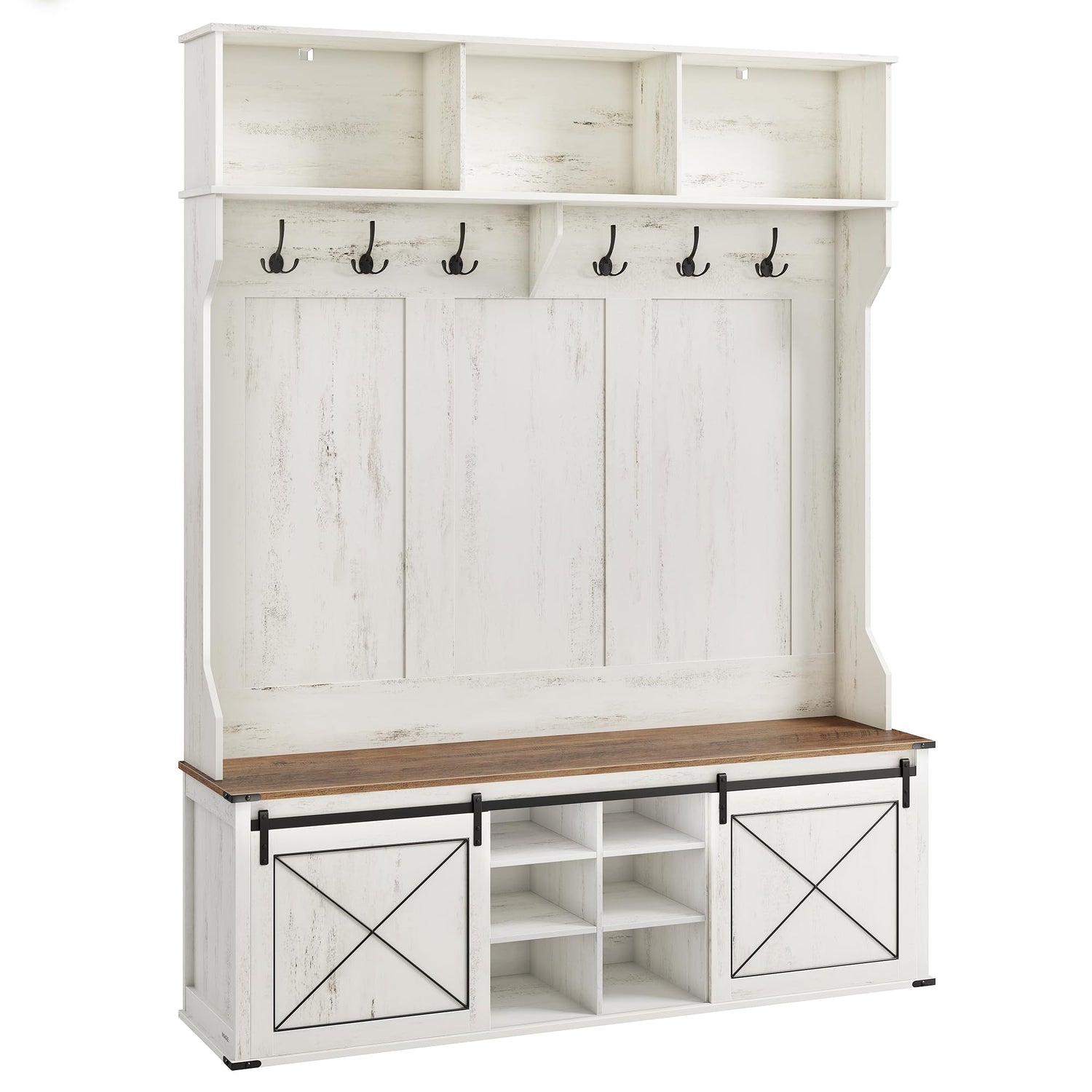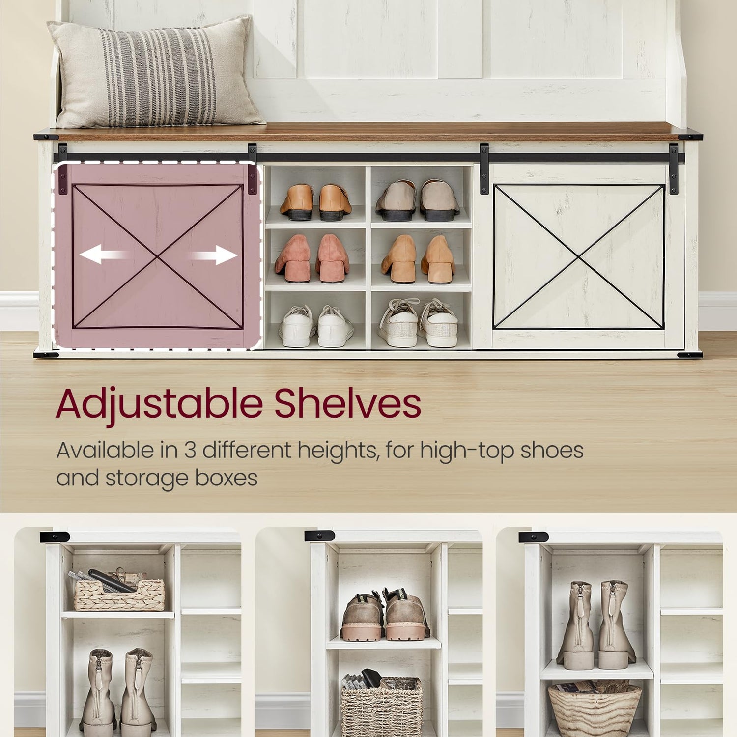 - 【FARMHOUSE CHARM WITH BARN DOOR】The rustic white and honey brown colors, combined with the barn-style door, infuse your home with farmhouse charm while keeping shoes neatly concealed for a tidy entryway