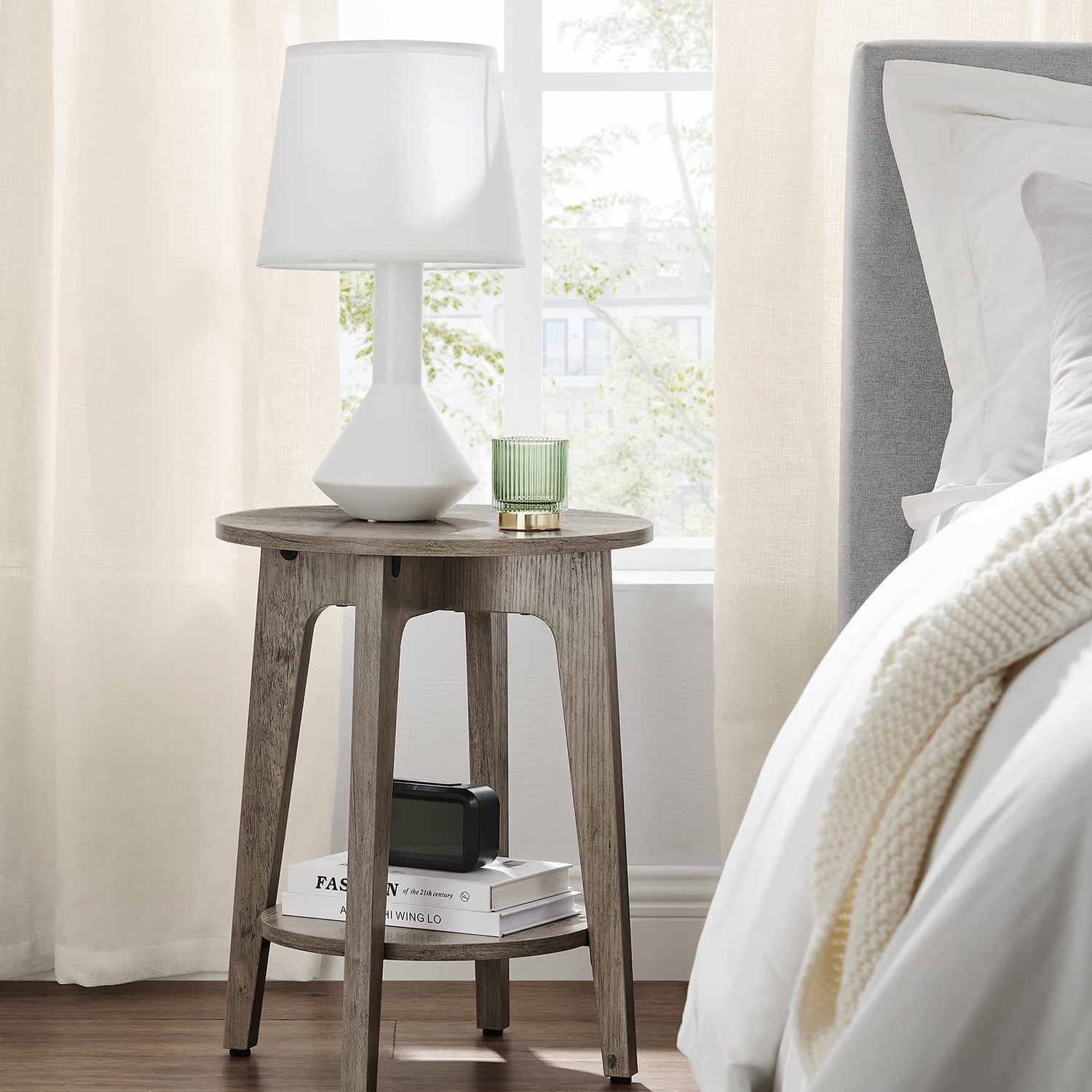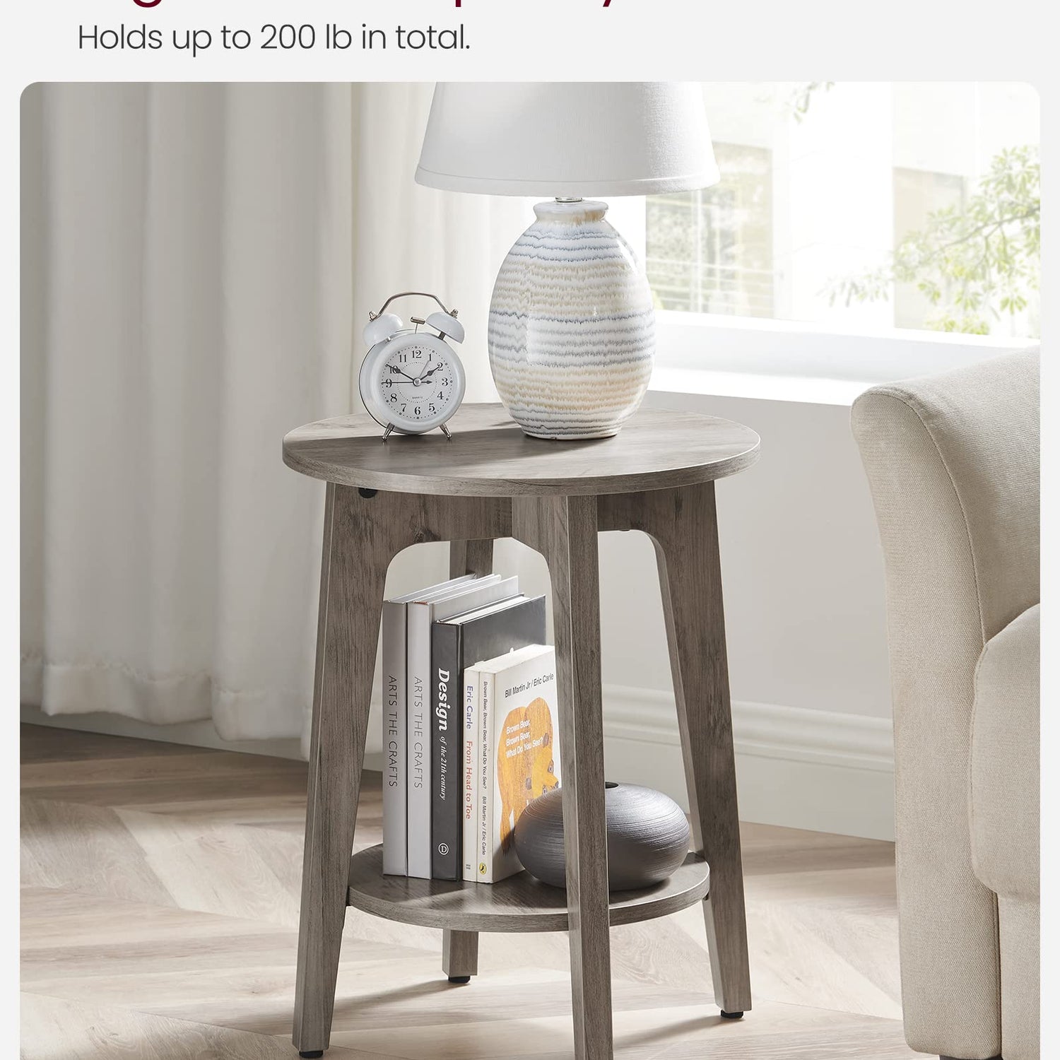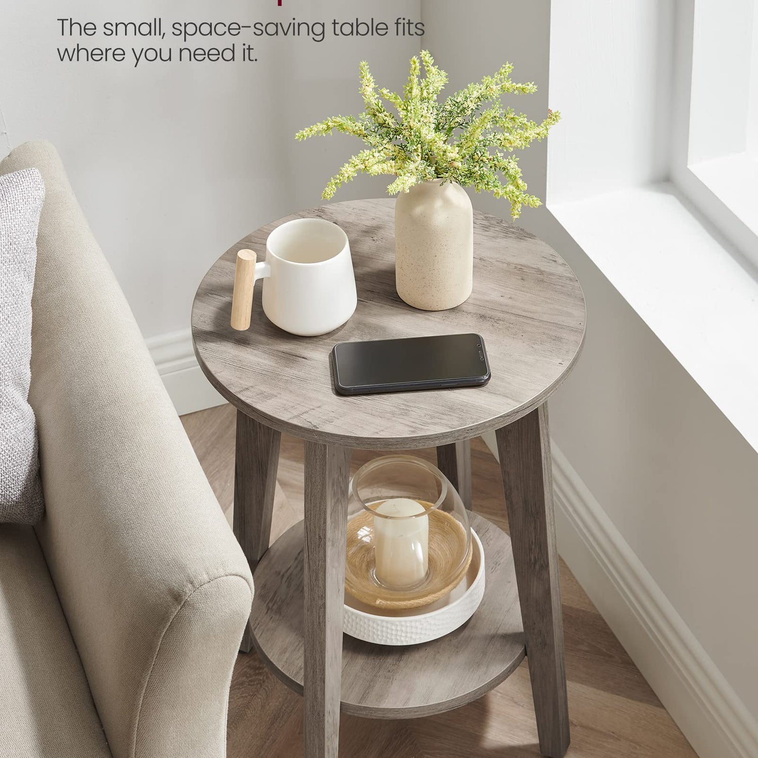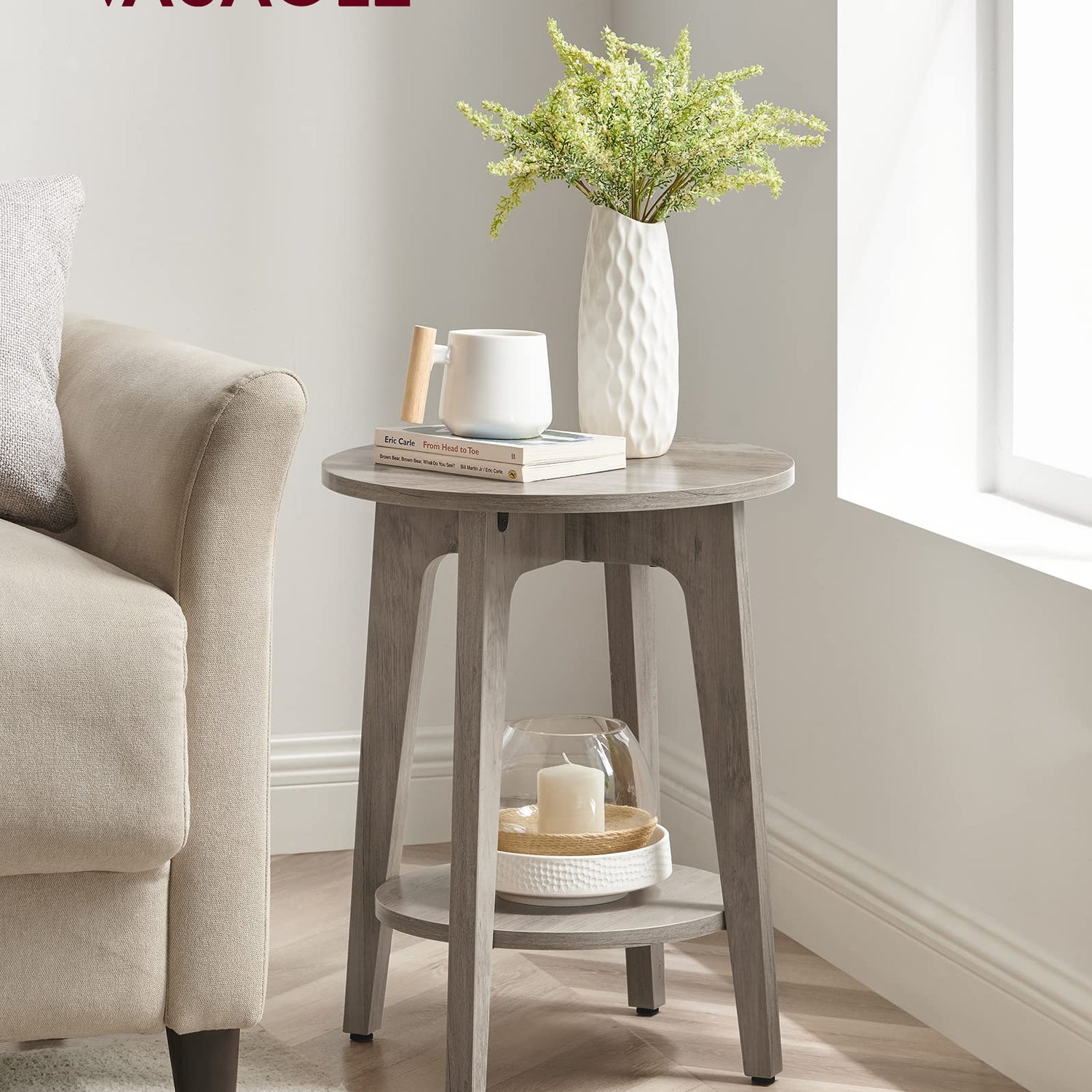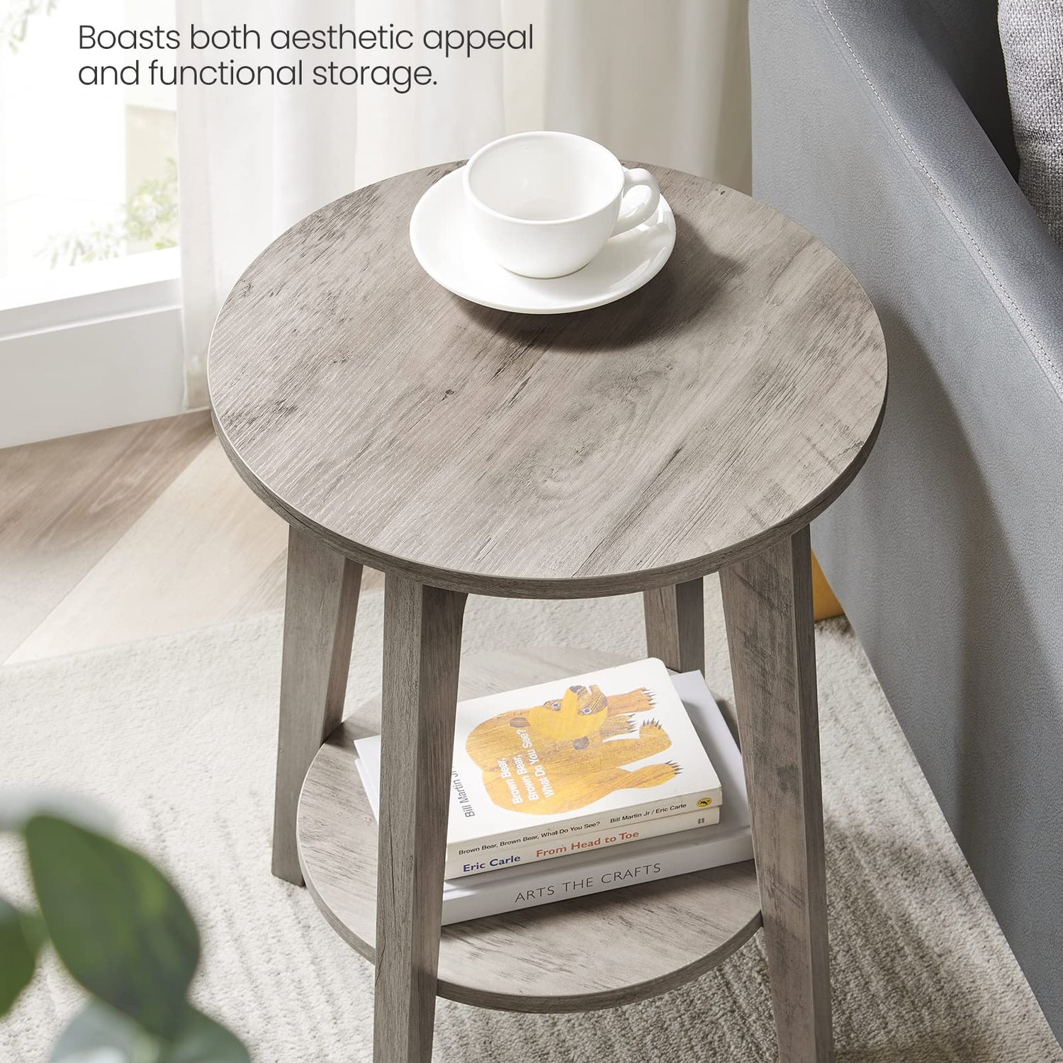 VASAGLE Side Table, Small Round End Table with Lower Shelf, Nightstand for Small Spaces, Living Room, Bedroom, Greige ULET283T02