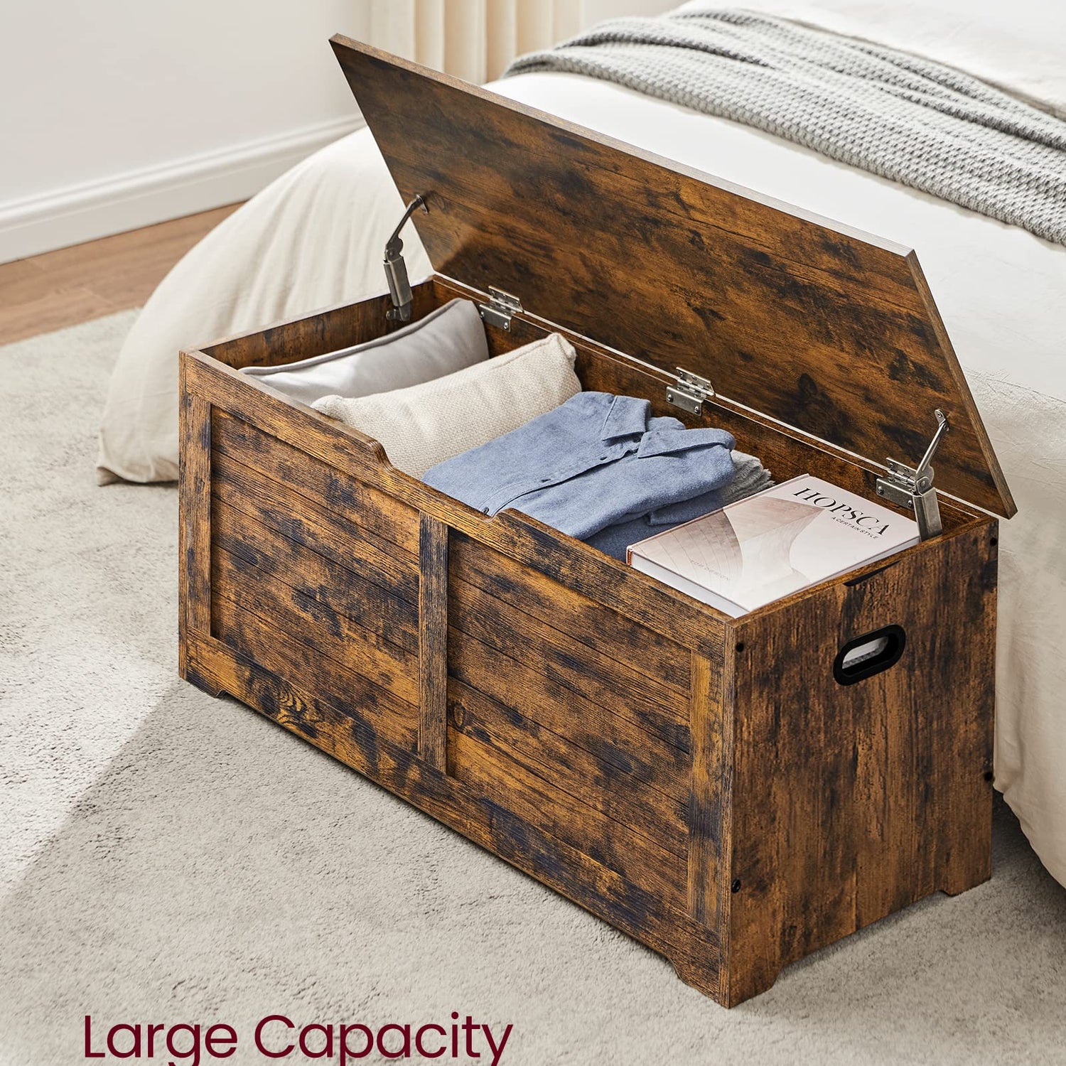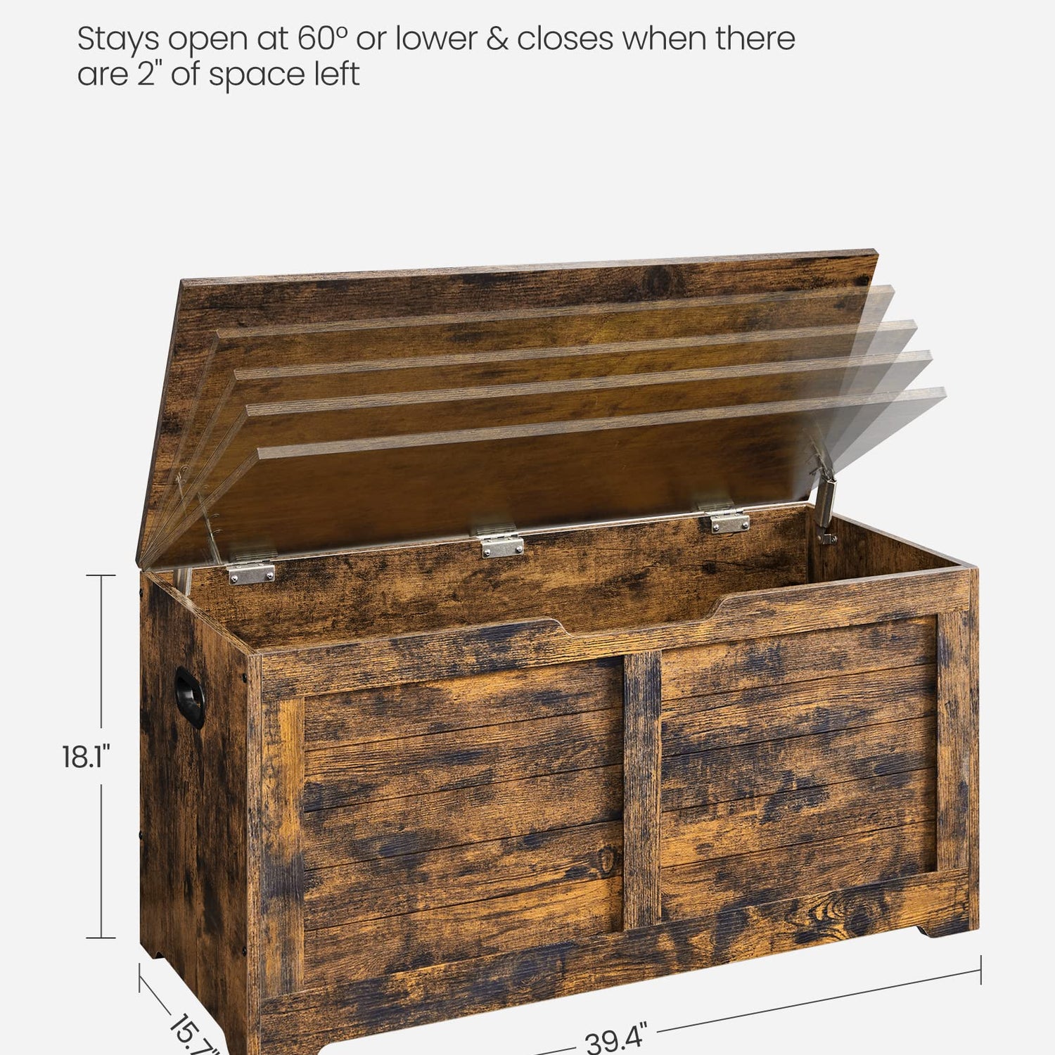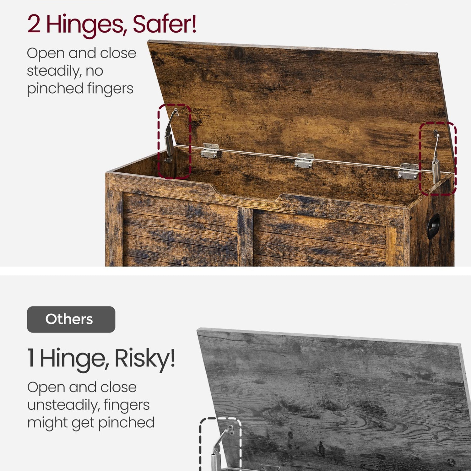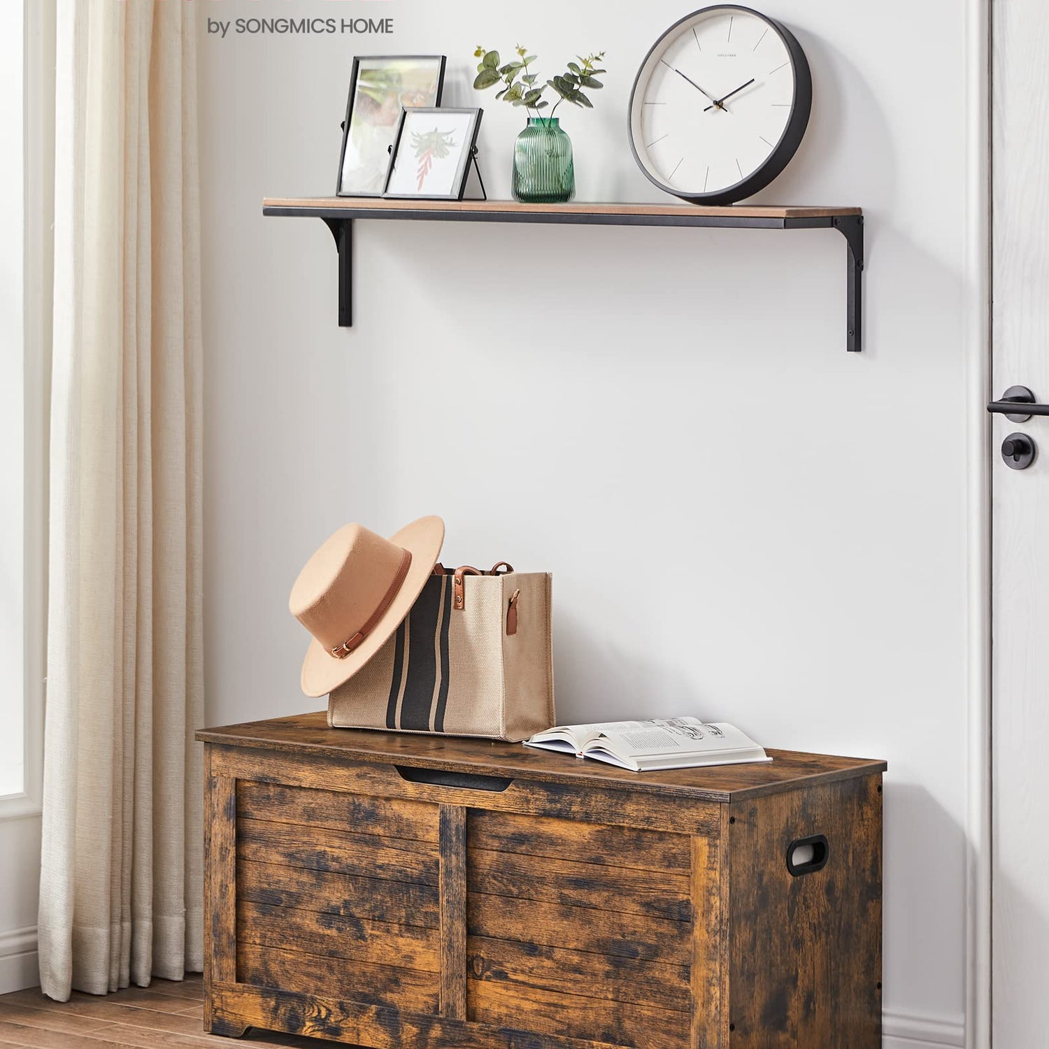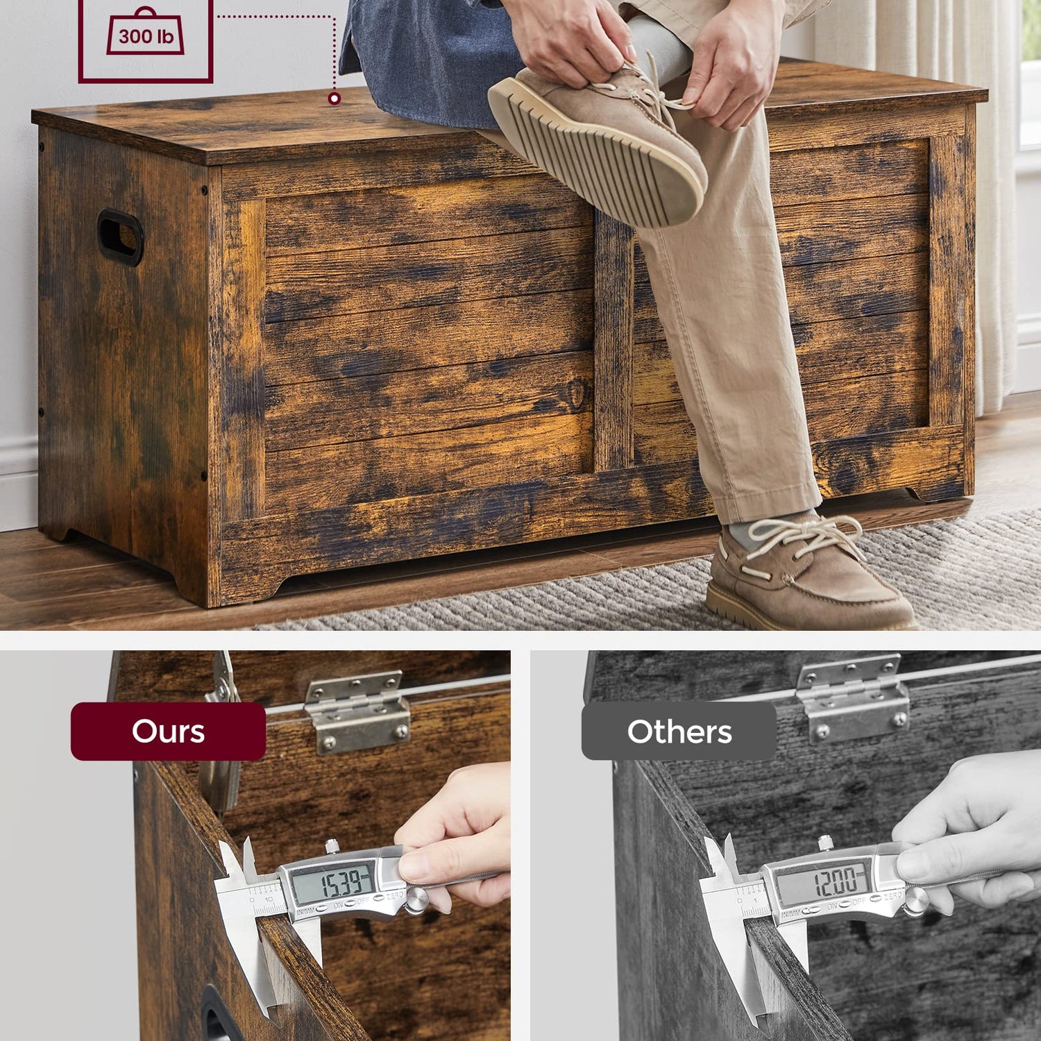 VASAGLE Storage Chest, Storage Trunk with 2 Safety Hinges, Storage Bench, Shoe Bench, Farmhouse Style, 15.7 x 39.4 x 18.1 Inches, for Entryway, Bedroom, Living Room, Rustic Brown ULSB061T01