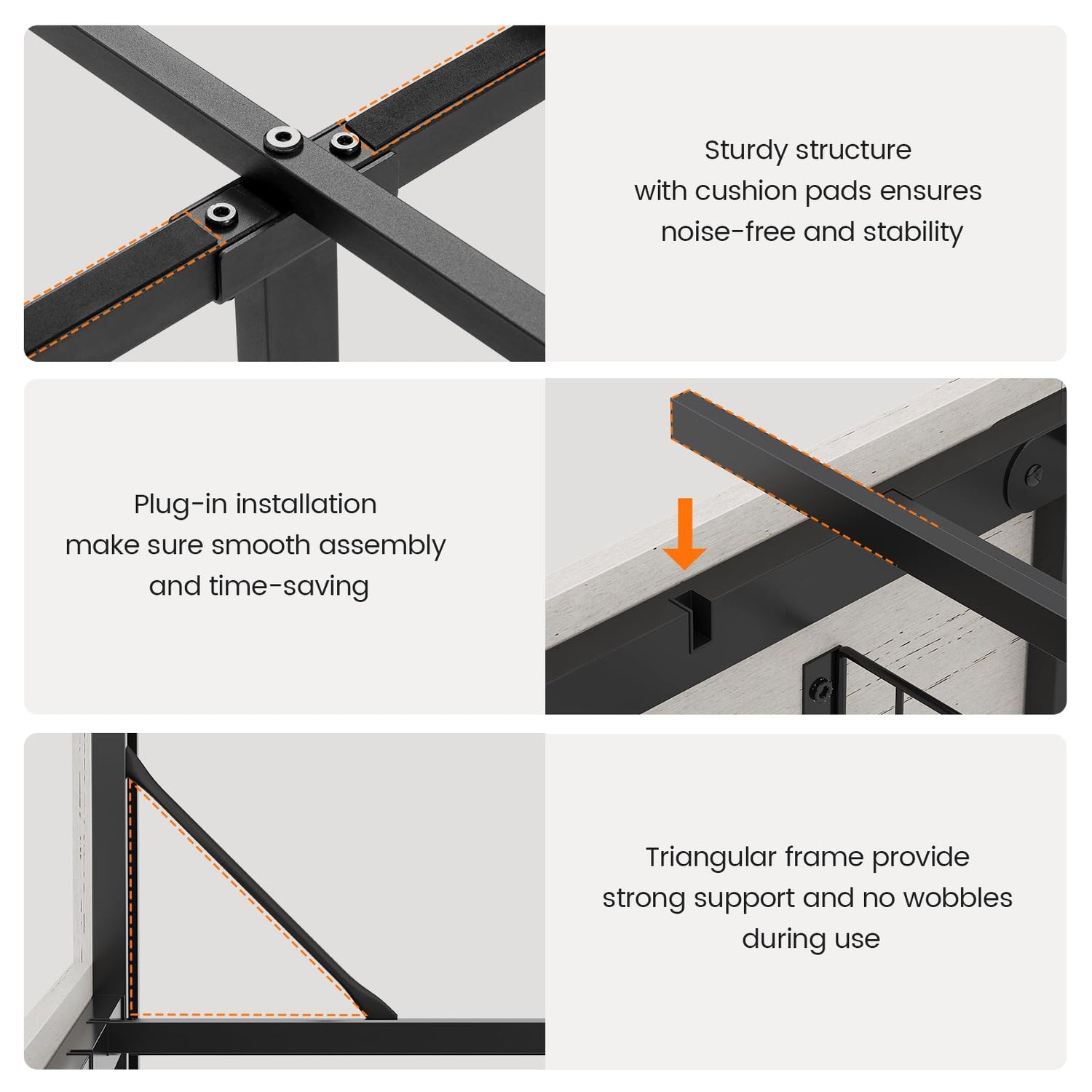 - 【4 Large Storage Drawers】This queen bed frame with drawers each measure 37.5'' D x 15.4'' W x 10.2'' H, offering deep storage for bulky bedding, seasonal wardrobes, or hobby supplies. The drawers also come with screw clips, which you can easily secure them to the metal frame of the queen size bed to prevent the drawer from slipping out. And the drawers are equipped with 4 wheels for smooth gliding in or out.