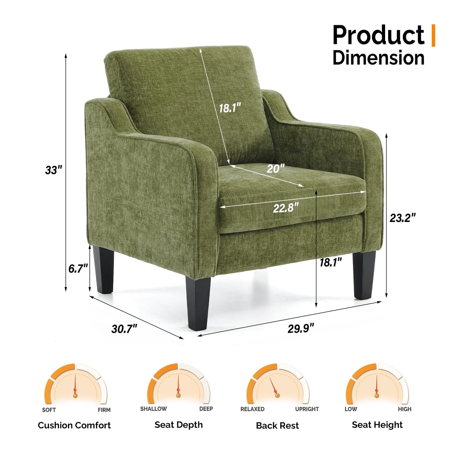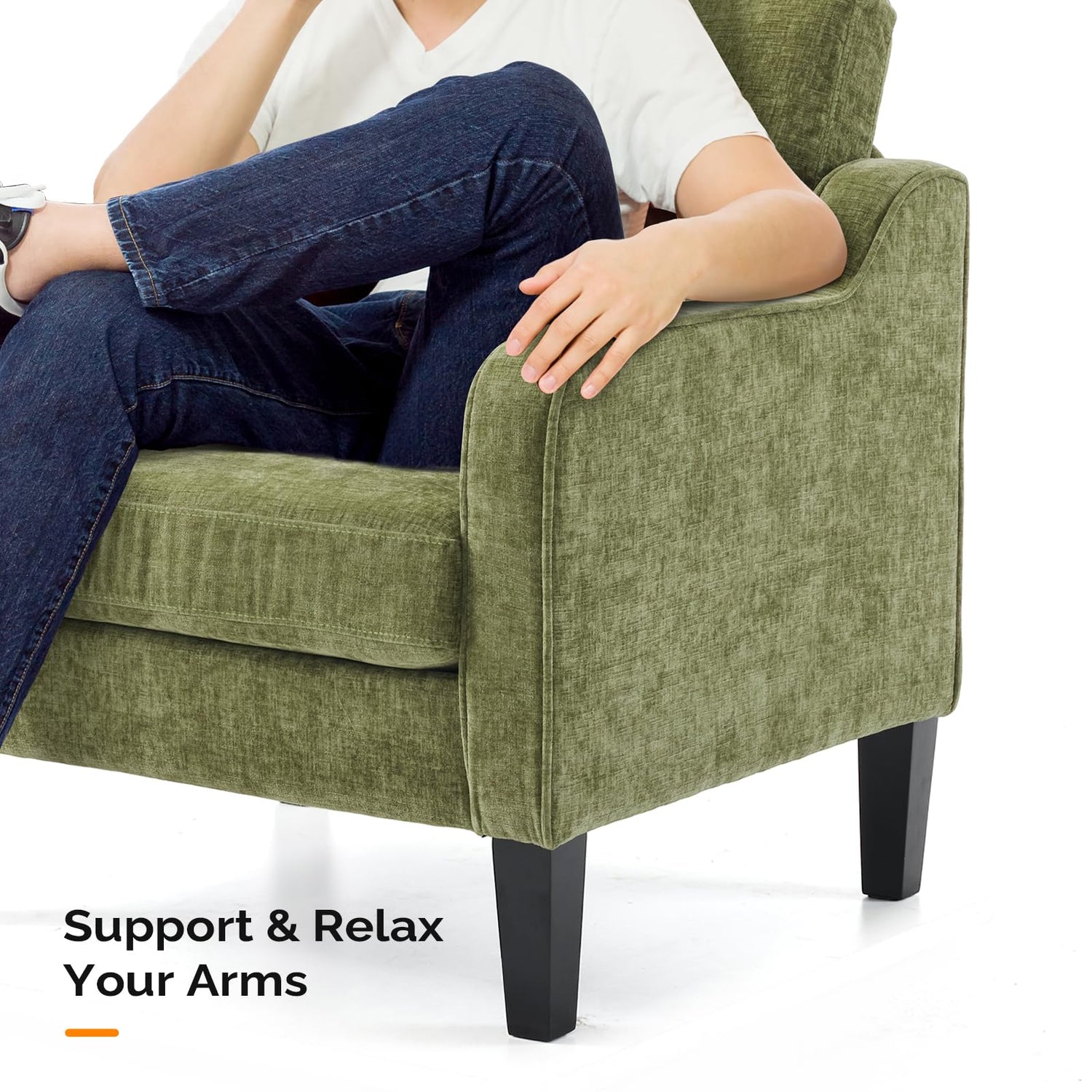 • Built for Stability and Durability--This living room chair features soft chenille material, resilient foam cushions with steel springs, a sturdy metal backrest, a wooden frame, and solid wood legs. It provides exceptional stability and seating support, boasting a weight limit of 380lbs ensuring a comfortable experience.