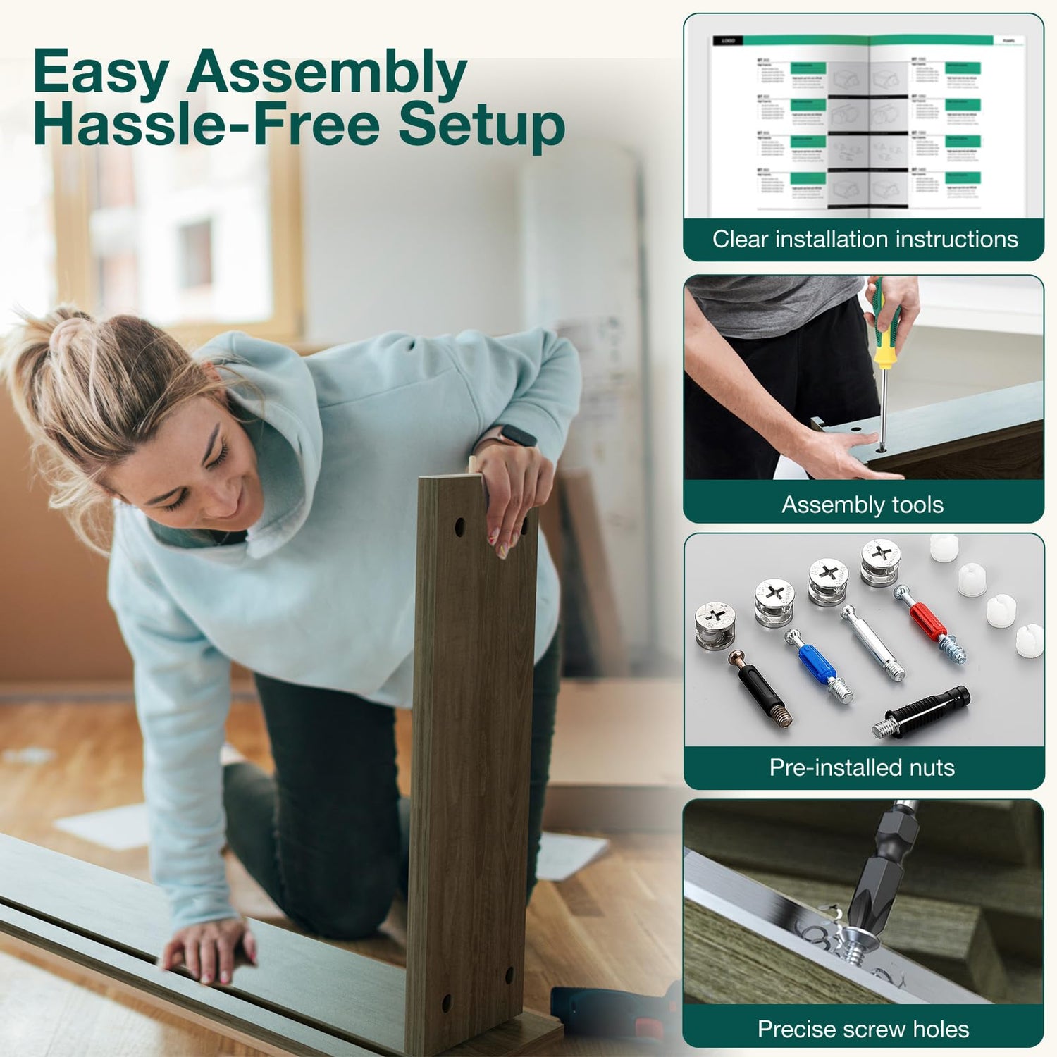 - Easy Assembly: Detailed assembly steps, precise screw holes, matching tools, and accurate instruction manuals allow even one person to assemble quickly. The 24*7H customer service team is on standby for you.