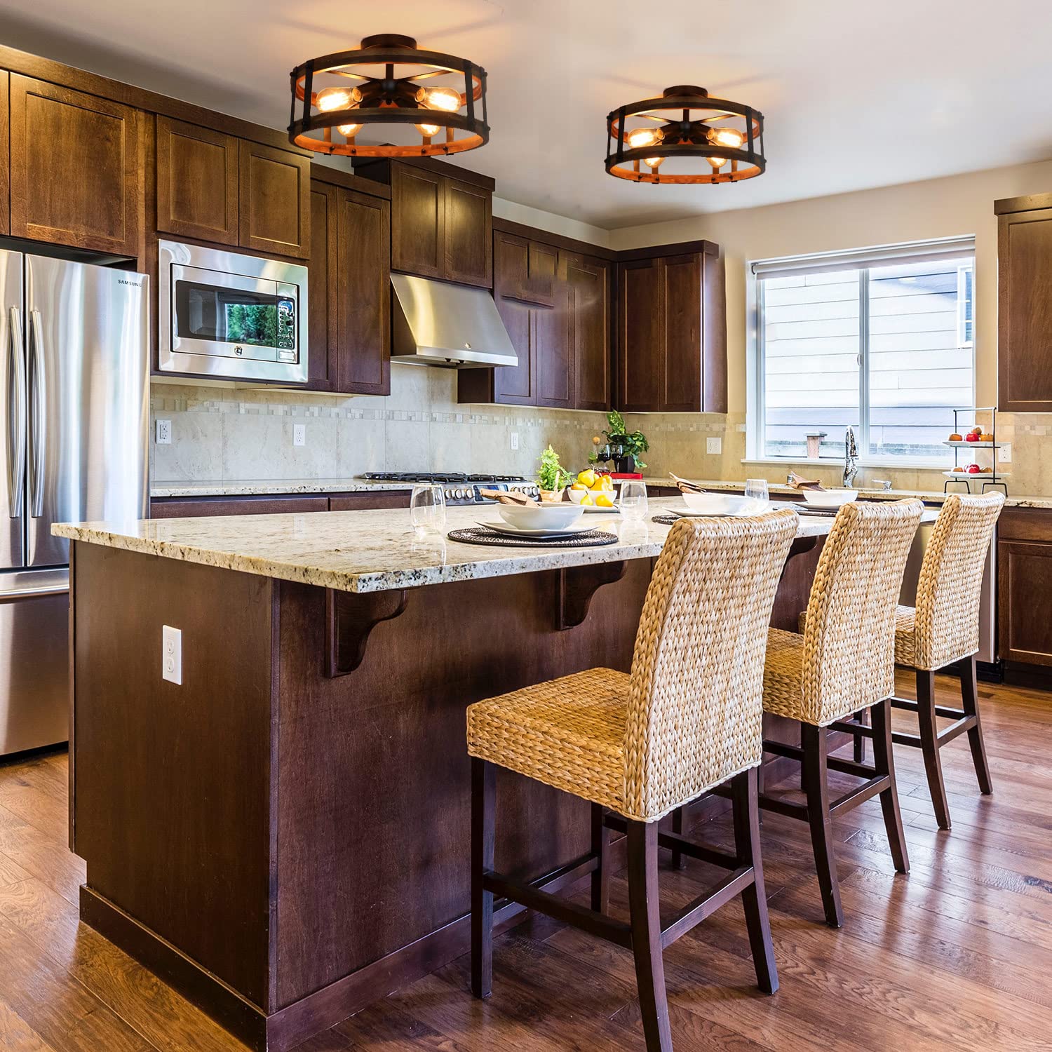 - [Durable & ETL Listed]: Our semi flush mount ceiling light is ETL listed for your safety. This rustic farmhouse chandelier is made of very durable material and is suitable for many different occasions such as kitchen island, dining room, living room, hallway and so on.