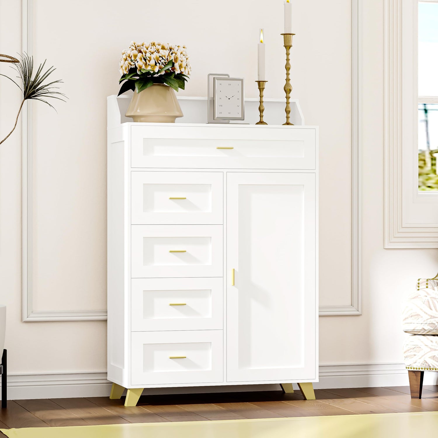 - 【Versatile Usage Dresser for Every Room】This white chest dresser completes with 1 big drawer, 4 small drawers, 2 cabinets and large top surface for additional storage, so the wooden dressers for bedroom can store lingerie, blankets, underwear, clothes as well as toys. Additionally, it can be also applied to a variety of scenes, living room, bedroom, guest room, hallway or entryway can be placed. More use scenarios waiting for you to explore.