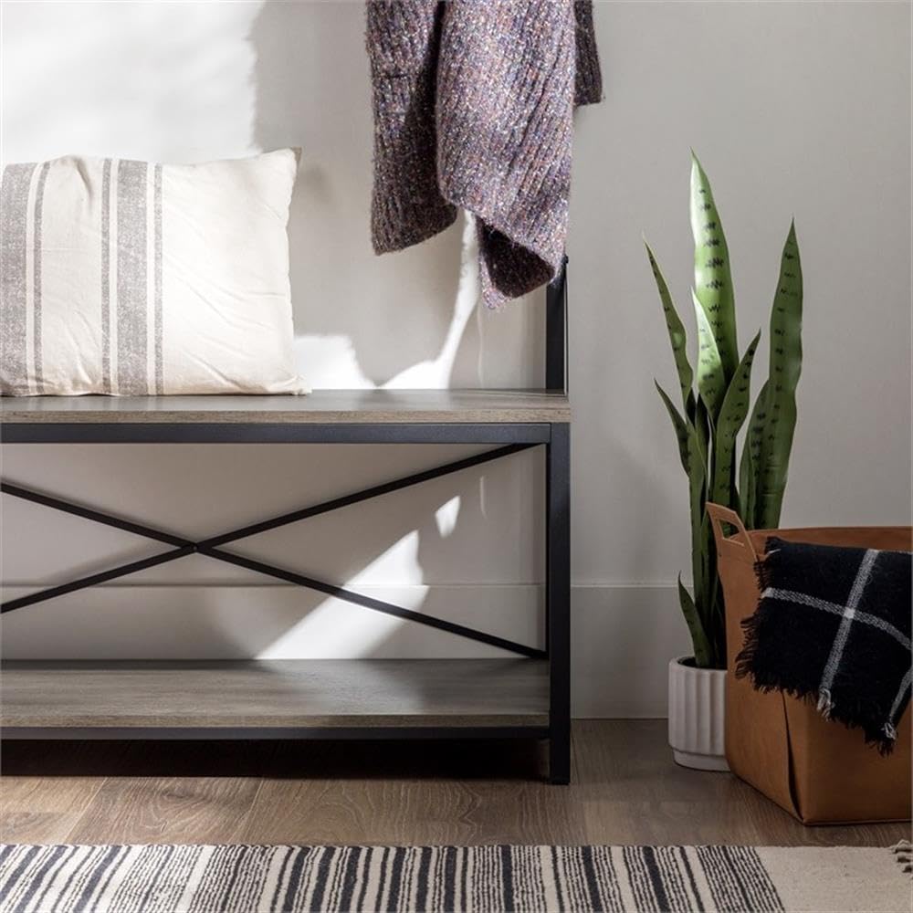 Walker Edison August Modern Farmhouse X Back Hall Tree with Bench, 72 Inch, Grey Wash