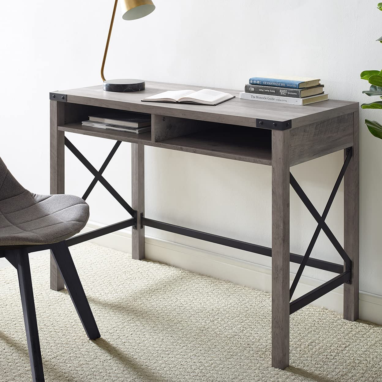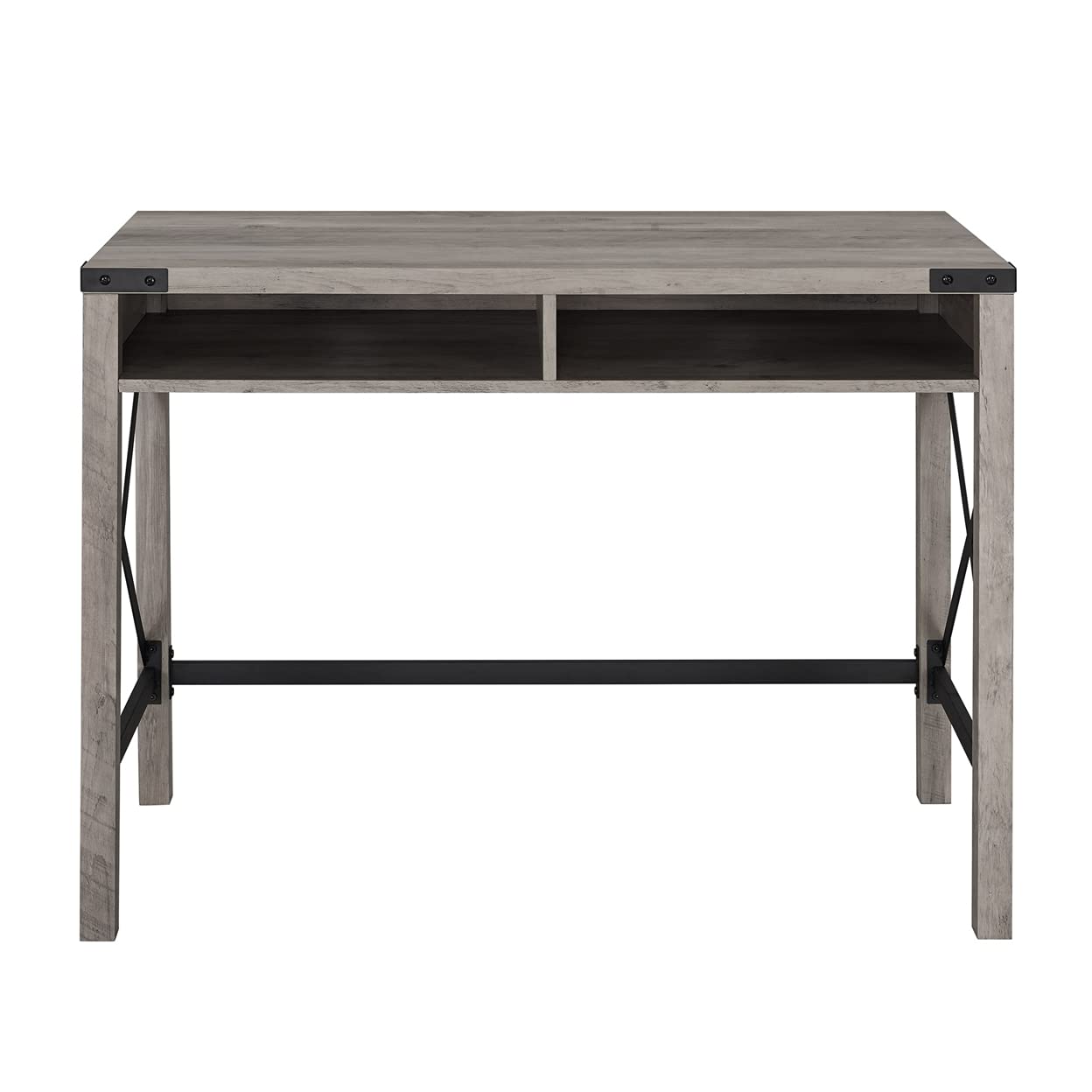 Walker Edison Callum Modern Farmhouse Metal X Writing Desk, 42 Inch, Grey Wash