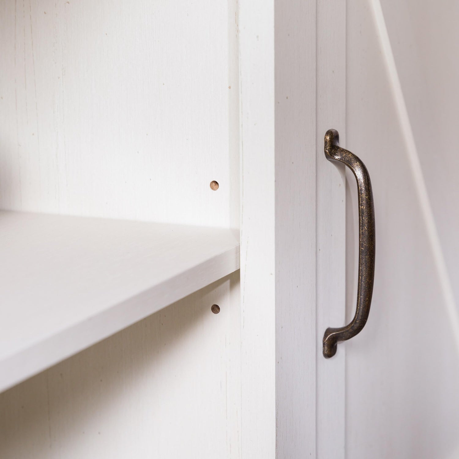 Details: Let your space speak your cozy lingo with this double barn door TV stand. Settle into movie night with a piece that flaunts a subtle farmhouse charm with equally admirable defining features, like its metal corner accents, exposed hinges, and bronze hardware. Three adjustable shelves are prime places for your media essentials for hassle-free watch parties or solo series binges. Two barn doors offer concealed storage for bins or movies, and a center open cubby debuts display space for décor. Come home to comfort, and retreat to your favorite show and the homey refuge of this two-toned TV stand.