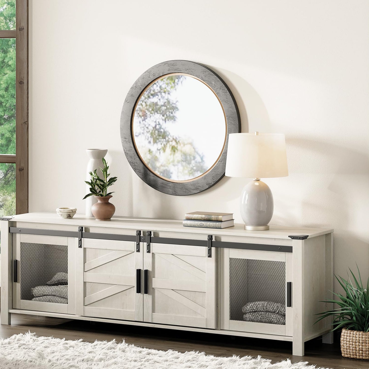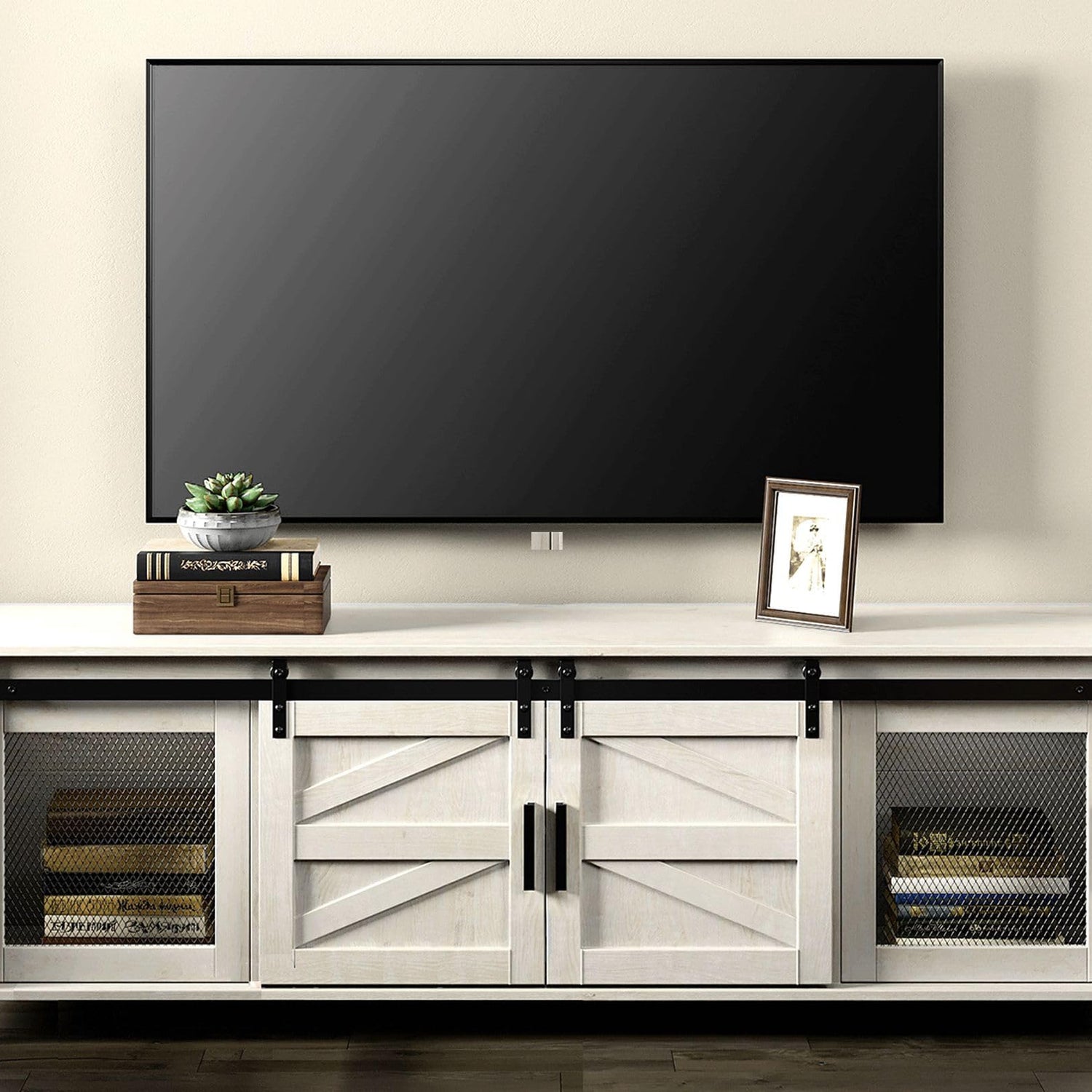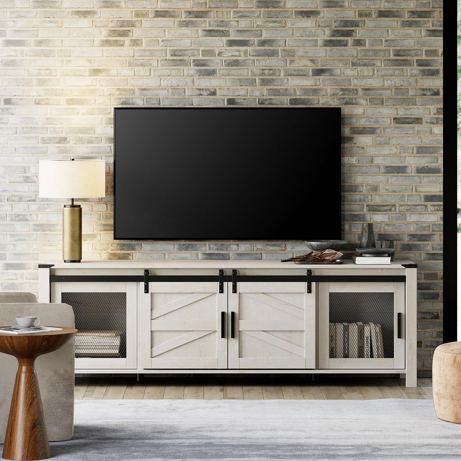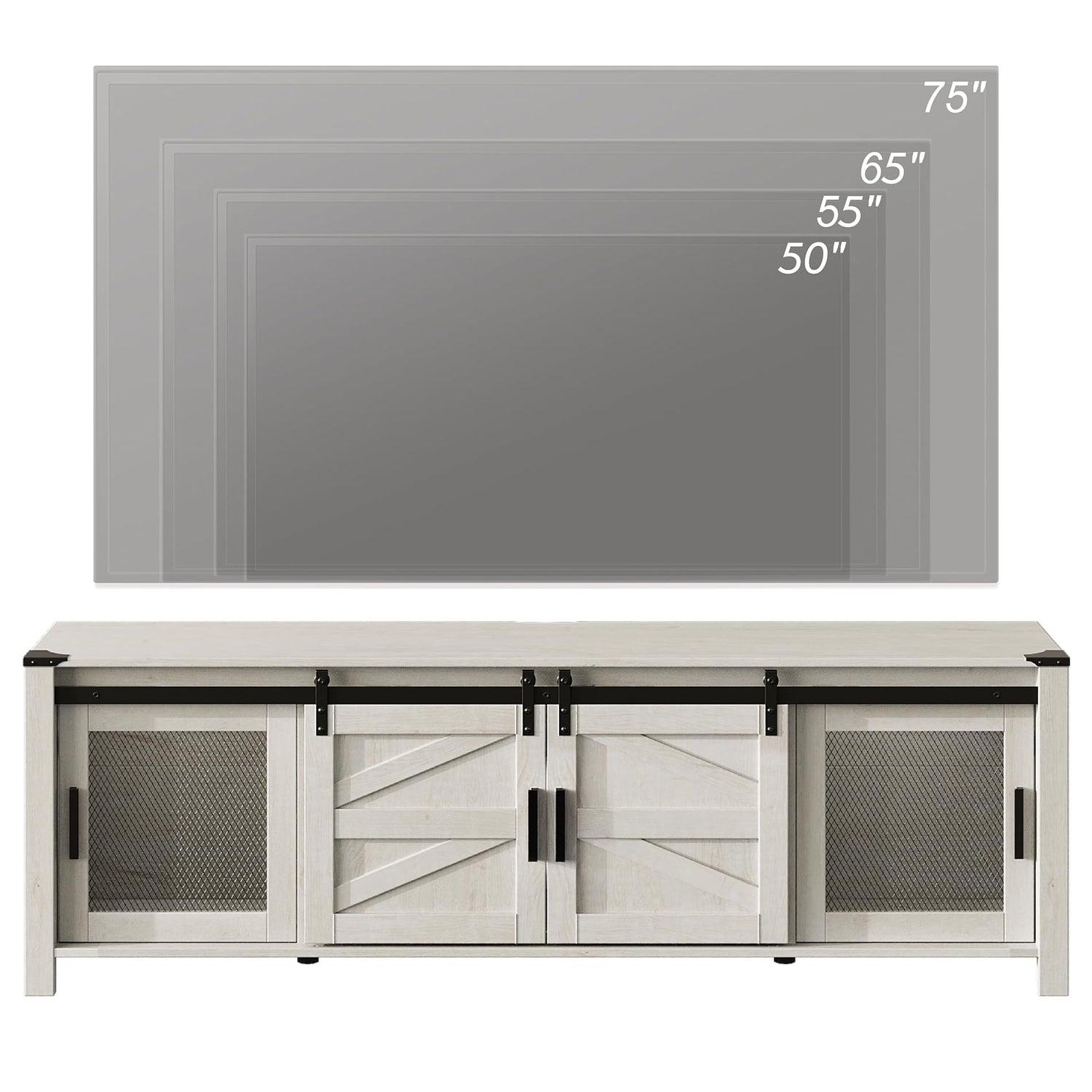 WAMPAT Farmhouse TV Stand for ups to 75 inch TV, 70" Wood Sliding Barn Door Media TV Console Table with Storage shelf, Entertainment Center for Living Room Bedroom,Antique White