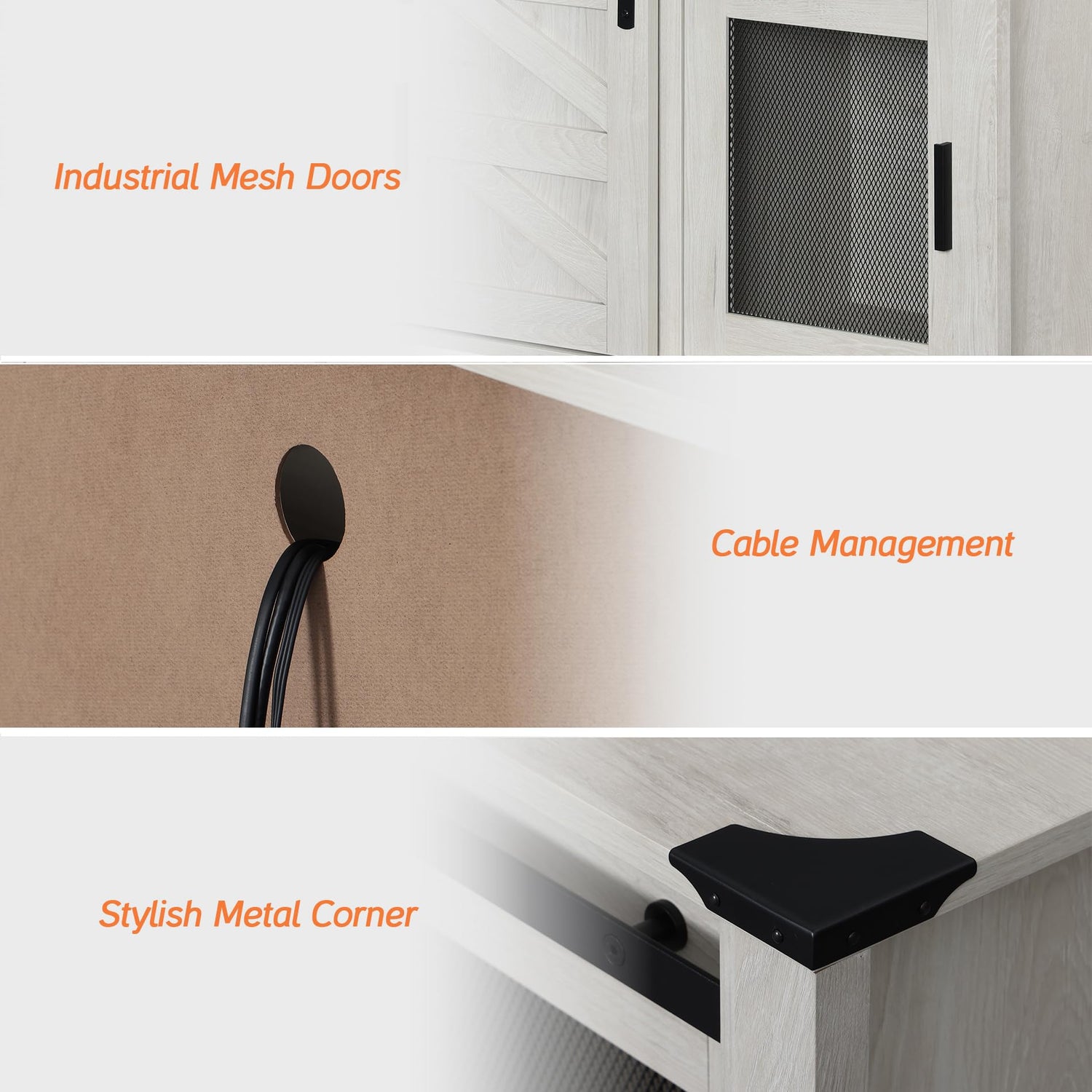 - 【Sliding Barn Doors】Our two sliding barn doors are designed with a special quality metal barn door pattern. Easy access to cabinets and shelves via metal track,,slide smoothly and quietly.