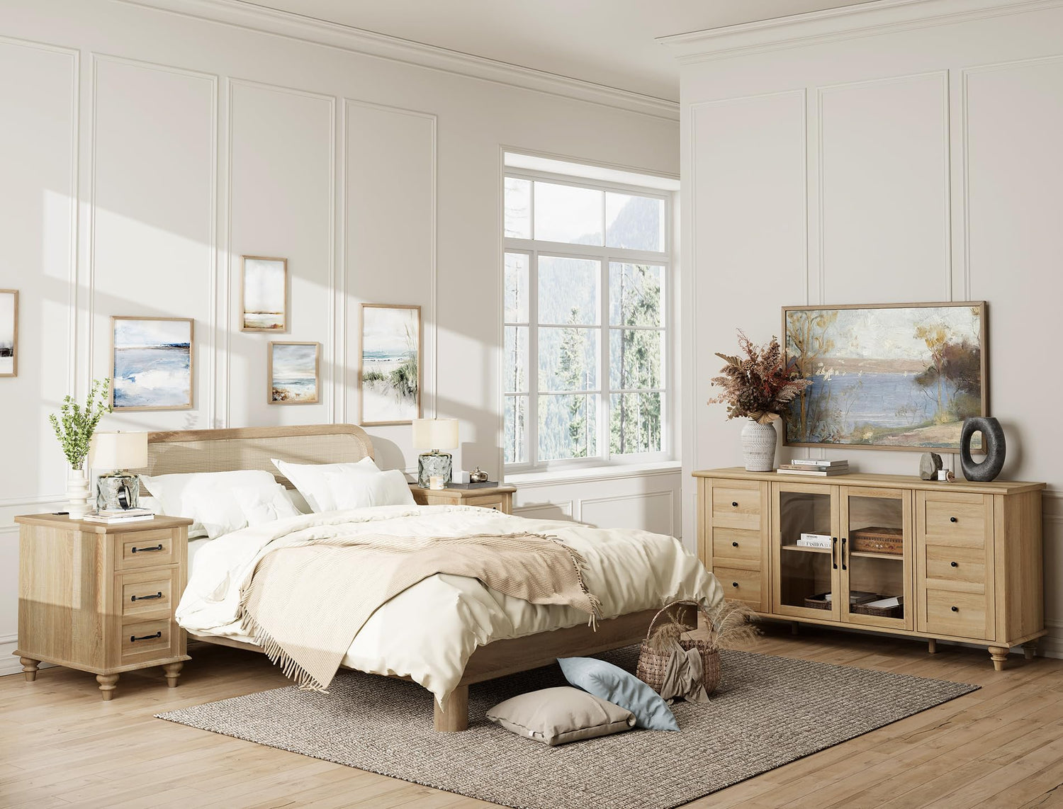 - 【Farmhouse Glass Door design】 The WAMPAT TV stand is made from the highest quality wood grain surface and features 4 open doors for easy access to all essentials. Suitable for a variety of decorative styles to add beauty to your living room. Multi-functional design TV cabinet, carefully designed in height and width, can be not only a TV console table in the living room, but also a dining room buffet sideboard cabinet, or a dresser in the bedroom.