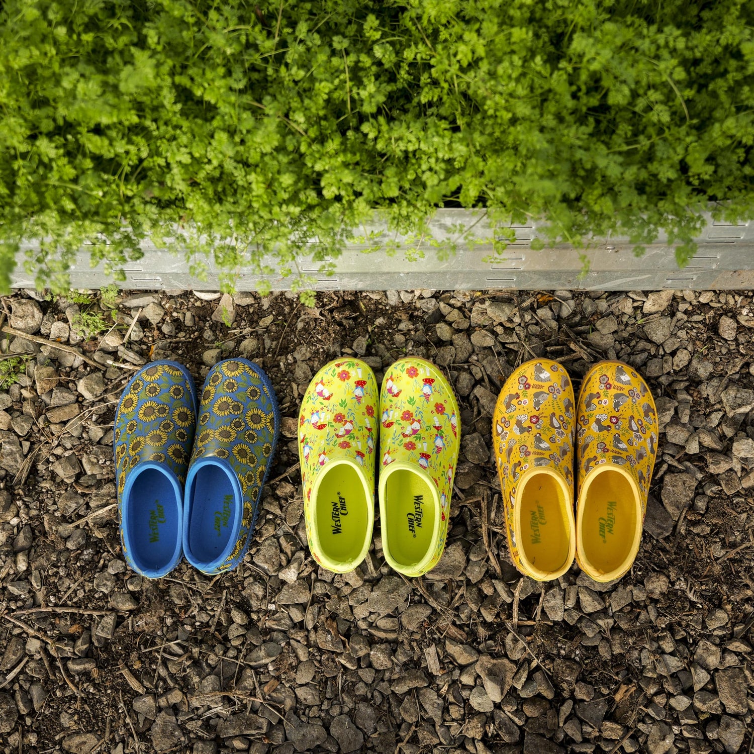 Western Chief Womens Waterproof Clog with Neoprene Lining and Rubber Outsole - Perfect for Garden and Outdoor Wear, Folk Chickens, 7