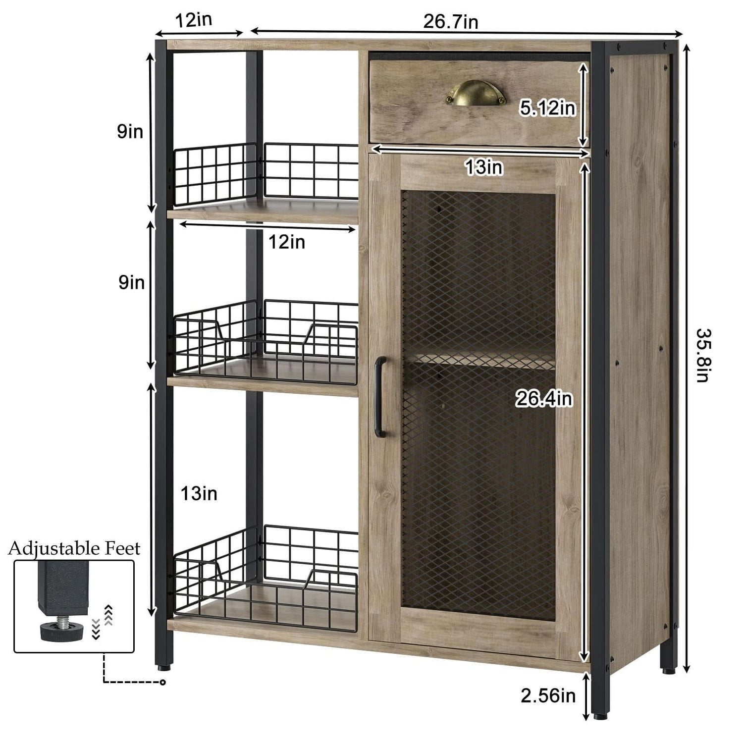- Adjustable Shelf & Foot Pads: The wooden panel on the right side allows you to customise the shelf height with adjustable screws, accommodating your varying storage needs. Plus, the additional adjustable foot pads provide enhanced stability on uneven surfaces.