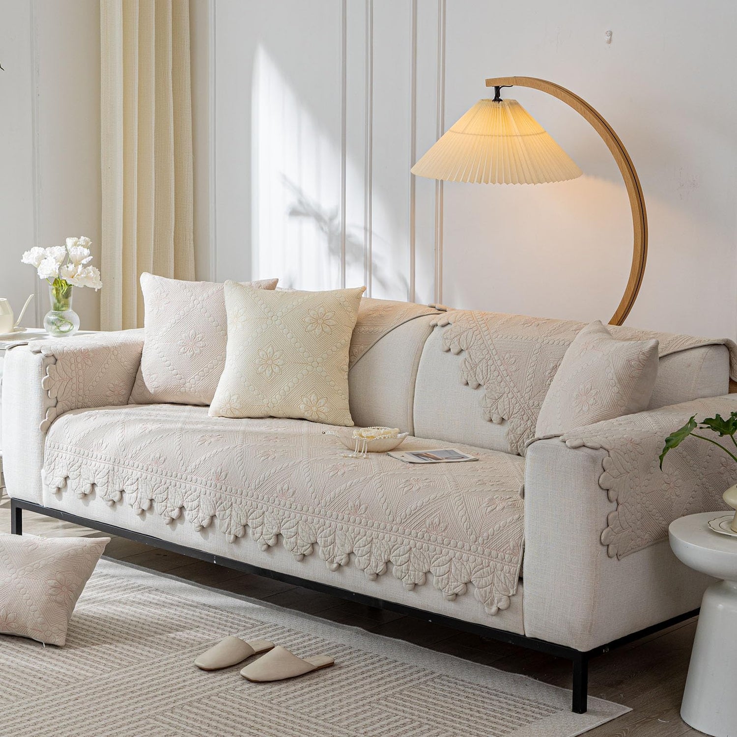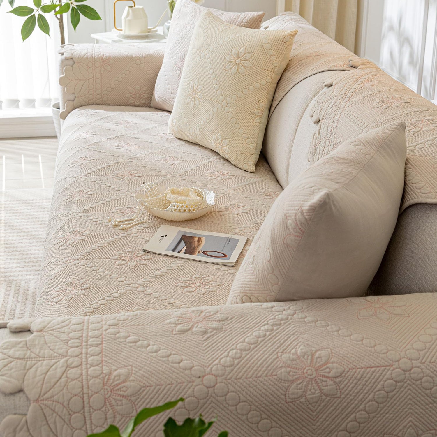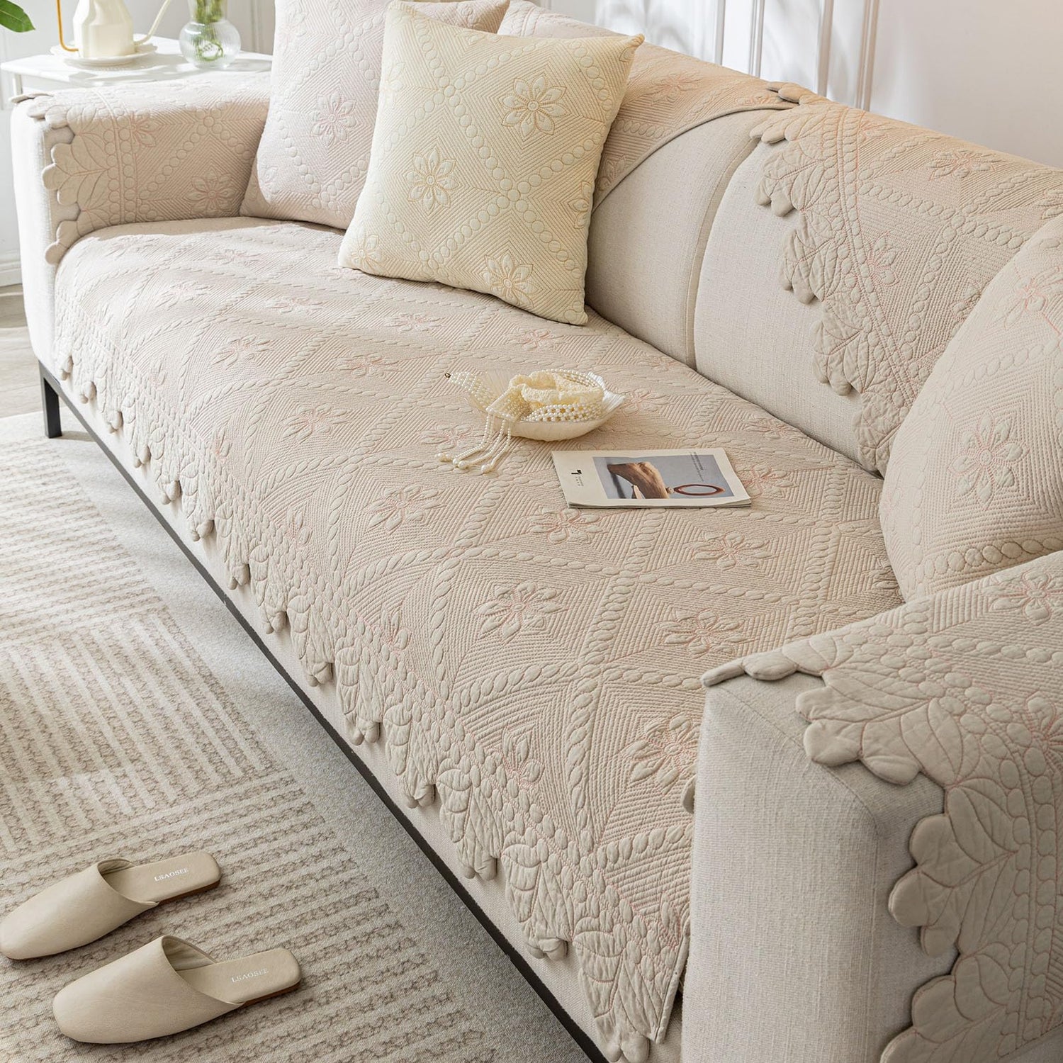 XSlive Cotton Quilted Dog Couch Cover for Sofa Farmhouse Rustic Embroidery Sectional Couch Cover Soft Anti-Slip Sofa Slipcover Furniture Protector for Kids, Pets (Khaki,43"x70")