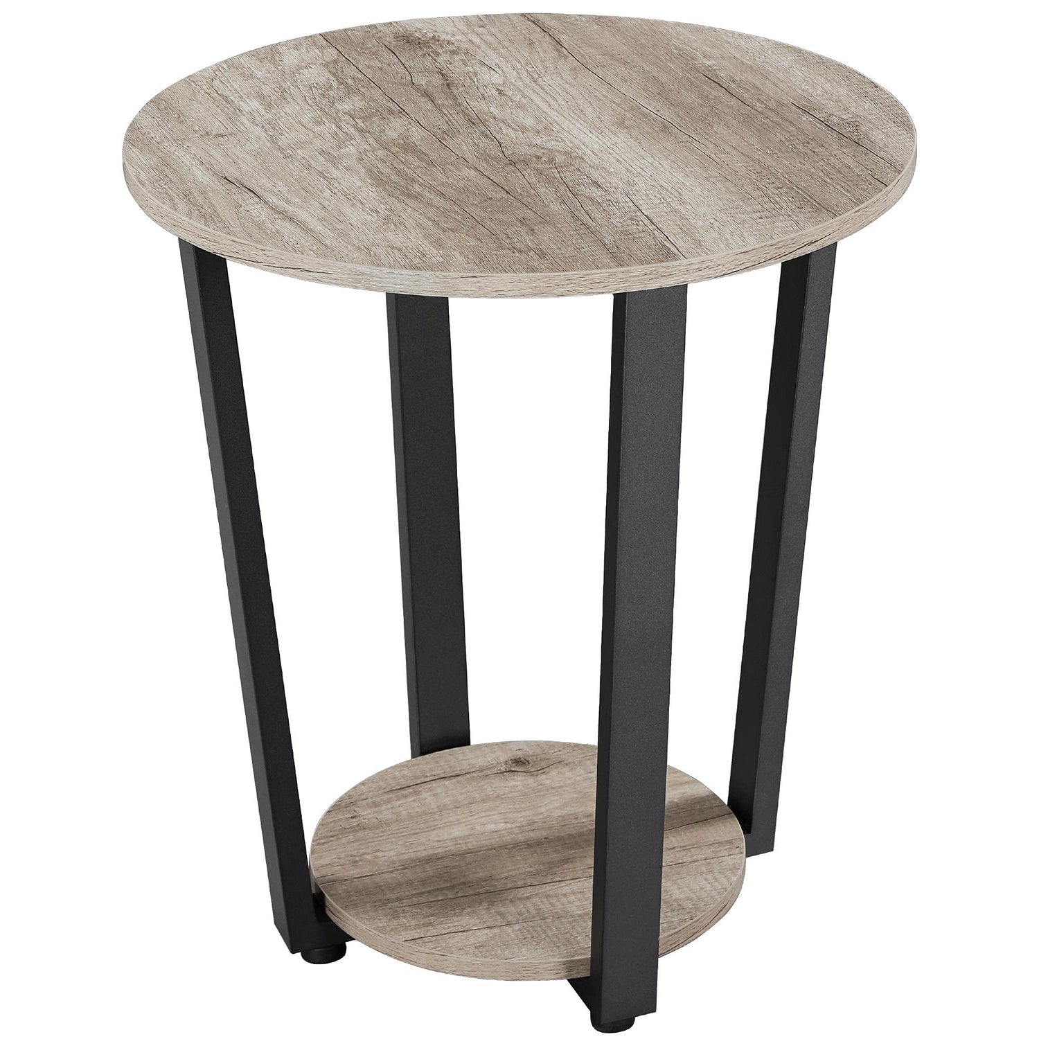 Yaheetech Farmhouse Round End Table with Storage Shelf, 2 Tier Side Table with Metal Frame and Sturdy Wood, Sofa Side Table for Living Room Small Spaces, Easy Assembly, Gray