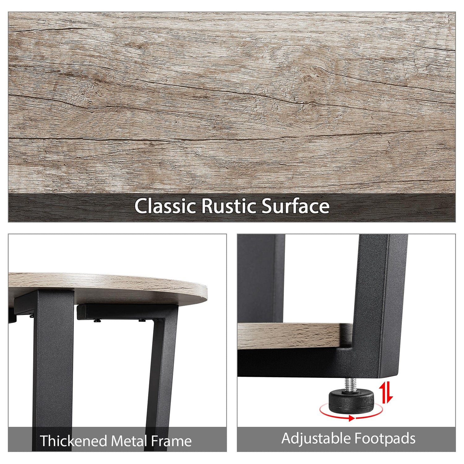 Details: Industrial Side Table, Metal Side Table, Round Sofa Table with Storage Rack, Stable and SturdyQuick overviewThis stylish multipurpose side table puts user’s needs first. Of a rustic brown round shape wooden/metal end table design, it is easy to fit almost all the space. With magazines, chips, laptops, glasses, handbags, tea/coffee cups at hand on the table, you are free to enjoy everyday couch time, bedtime, patio leisure or entryway convenience. An attractive addition to your living room, bedroom, patio/balcony and hallway. Make cleaning a breeze.Specifications:Color: greyMaterials: metal, MDFOverall Size: 20 x 20 x 23'’ (L x W x H)Diameter: top base: 19.7'’; bottom base: 13.8'’Distance between top and bottom bases: 19.7''Load capacity: top base: 200 kb; bottom base: 33 lbN. W.: 12 lbG.W.: 13 lbNote:Please allow minor errors due to manual measurement.Package included:Industrial Side Table x 1User's Guide x 1