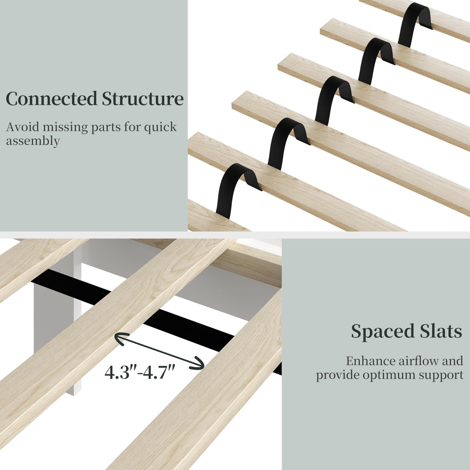 - Sturdy Slat-Style Bed Platform: Paired with eight supportive legs and 12 wooden support slats, including two groups of six slats connected to stretch across the bed frame's width. This wooden bed frame with slats provides an excellent weight capacity of 800 lb