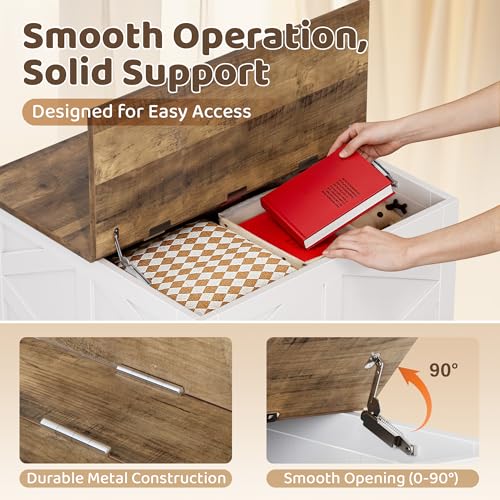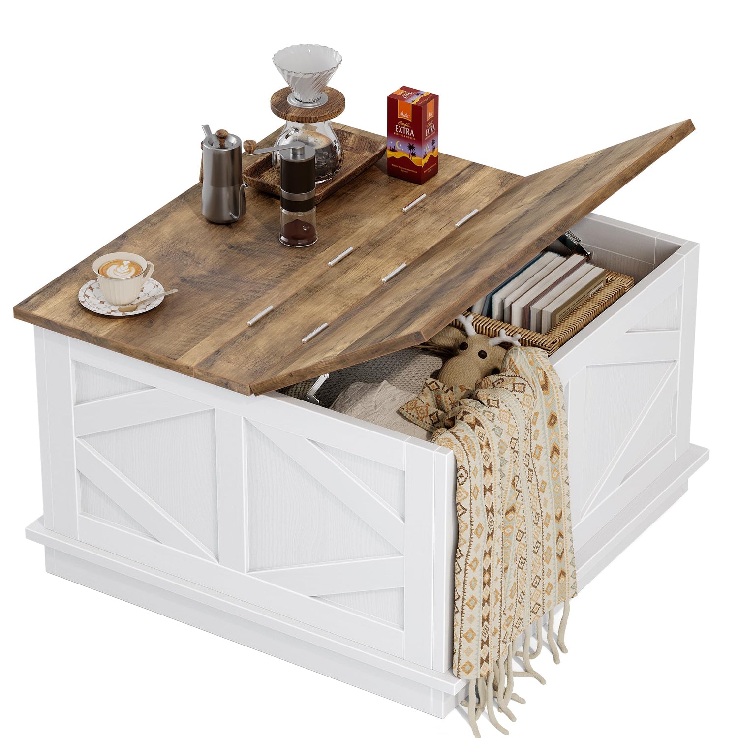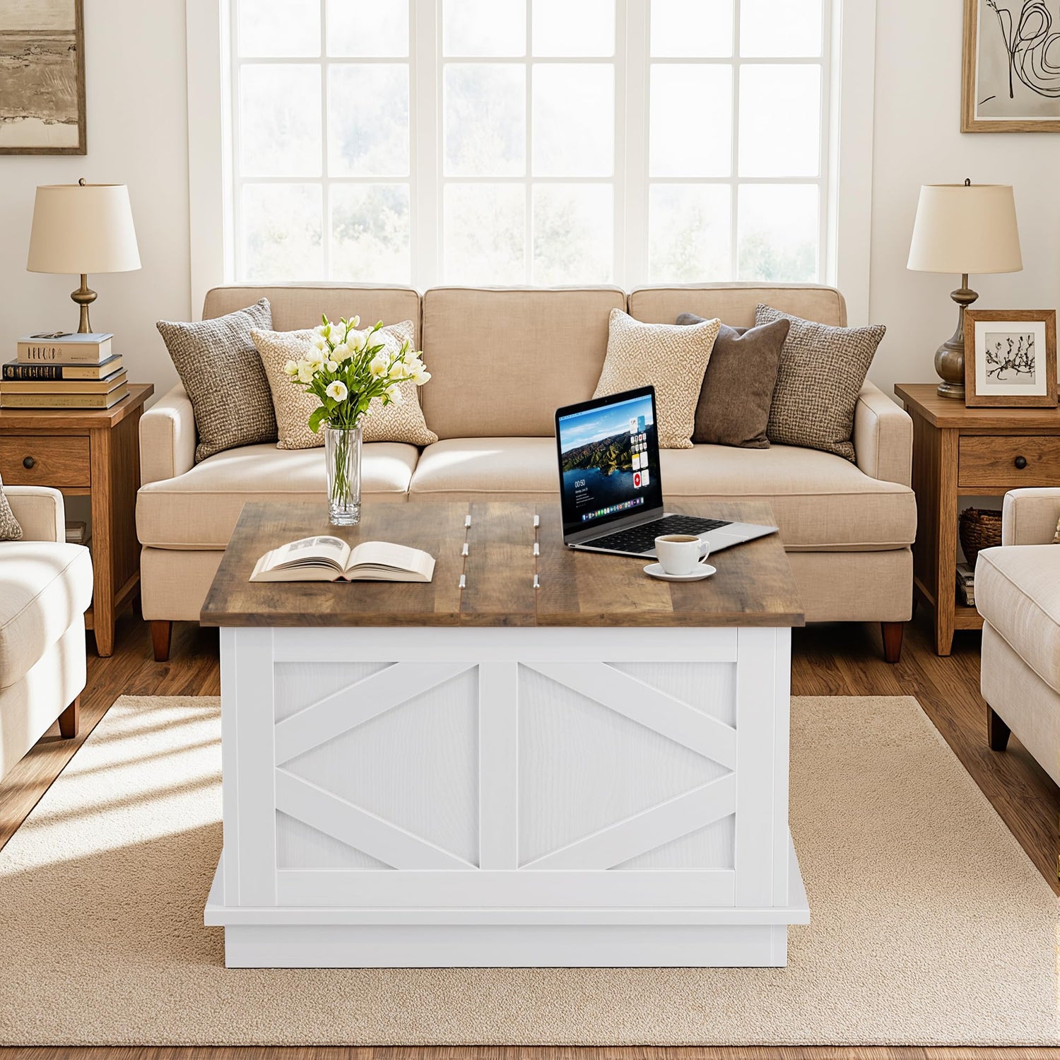 YESHOMY 31.5 inch Farmhouse Coffee Table, Coffee Tables for Living Room, Center Table with Flip-Top Lids, Large Storage Space (White)