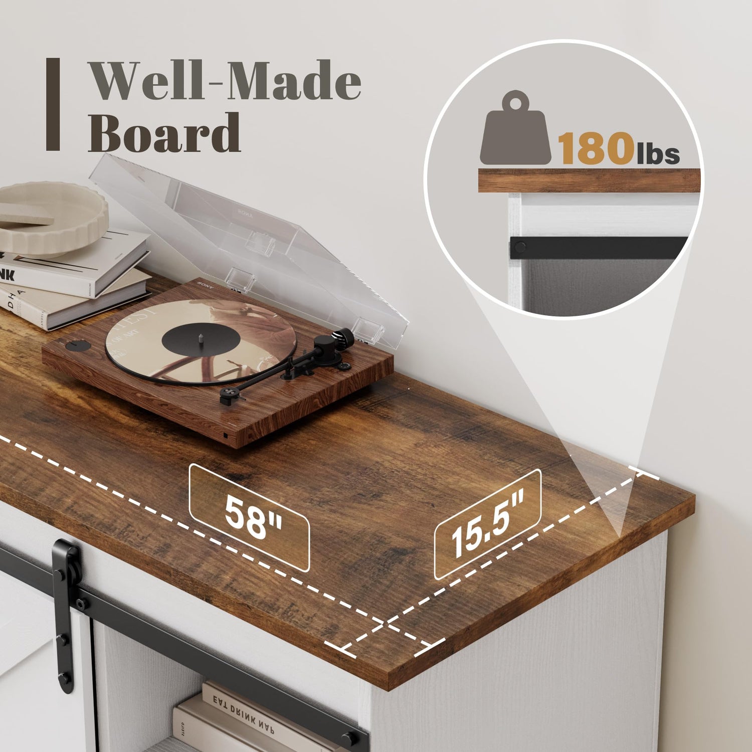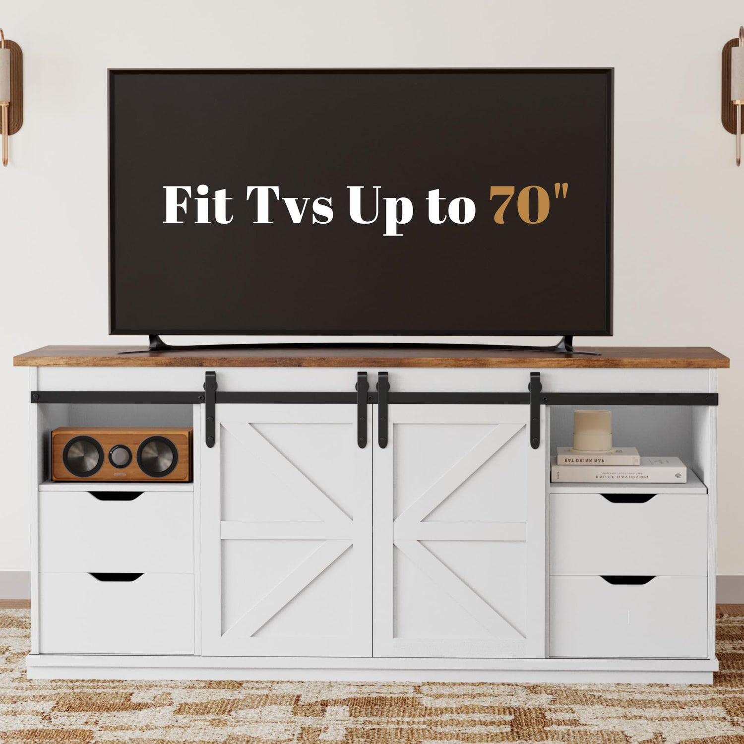 YESHOMY TV Stand for Televisions up to 65 Inchs, with Sliding Barn Doors and 4 Storage Drawers, Console Table and Media Furniture for Living Room, 58 Inch, Milk White