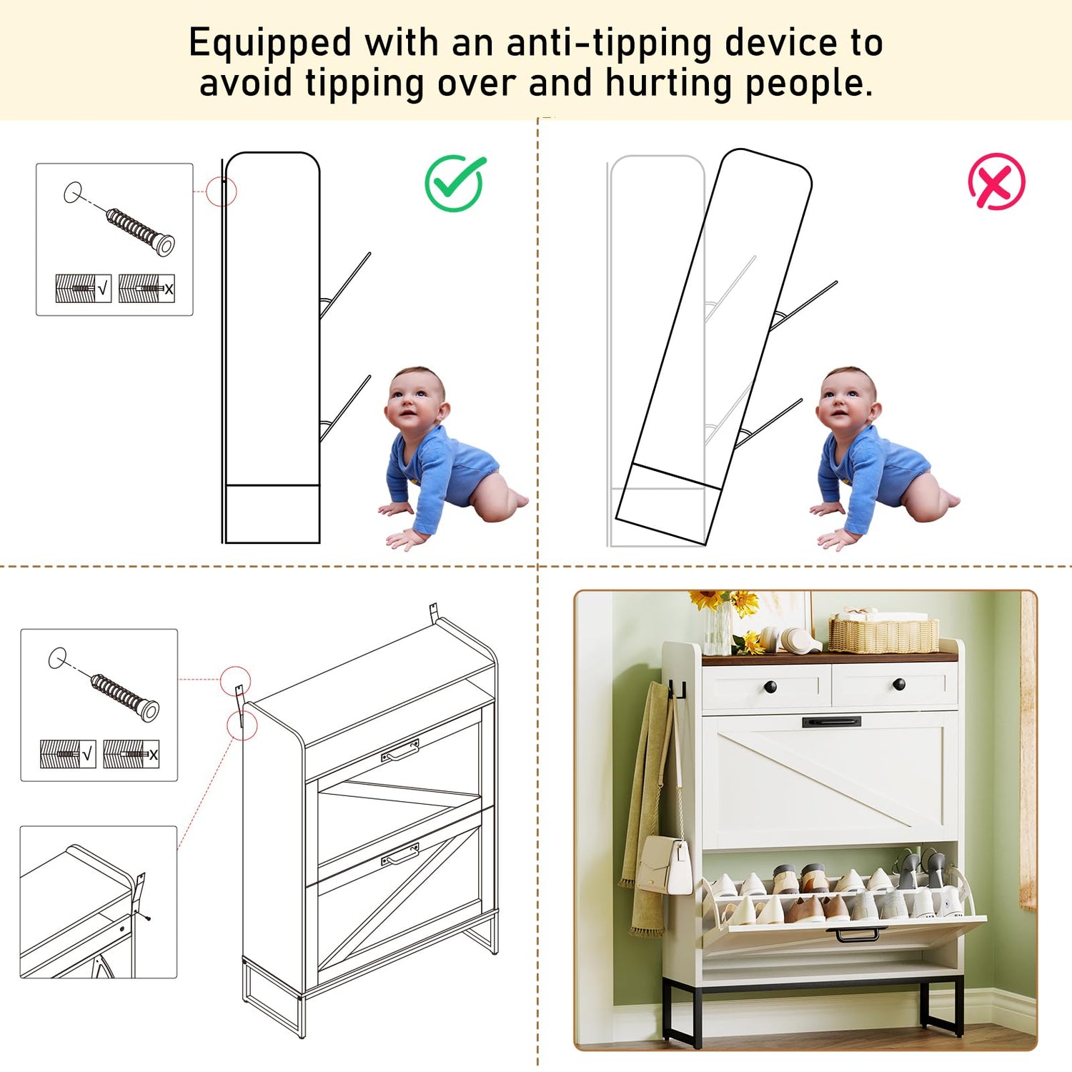 - Easy to Assemble: The shoe cabinet is equipped with all necessary components, hardware, installation instructions, and installation videos. Each component has a corresponding label. In our design, we have minimized unnecessary assembly steps to reduce installation difficulties. If you have any product issues, please email us promptly. We always reply within 24 hours.