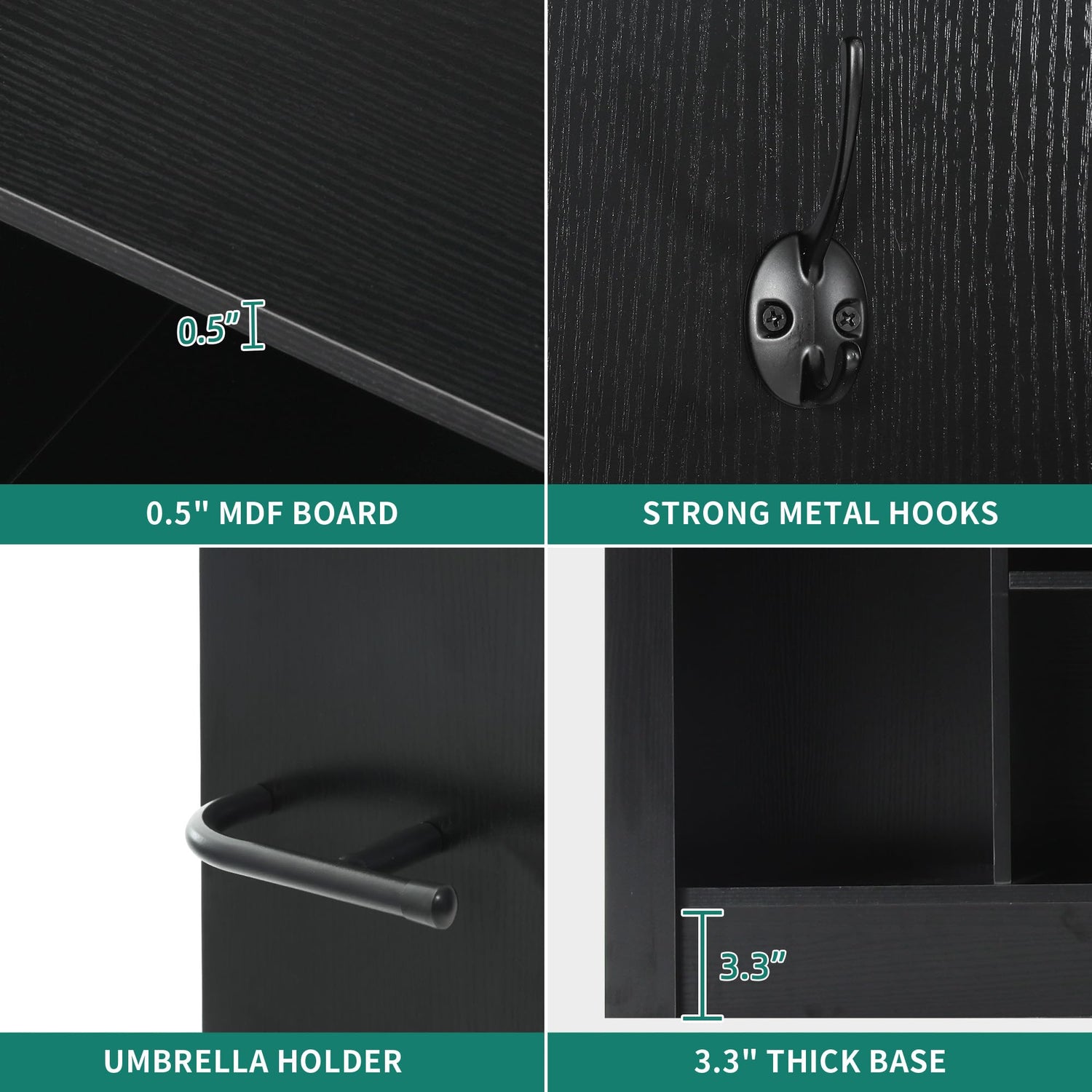 - Adjustable Storage: Easily store tall boots and high heels with the adjustable shoe shelf, designed with your footwear in mind. Three of the five hooks are designed for long coats, keeping them wrinkle-less. Plus, the umbrella holder makes keeping storage a breeze