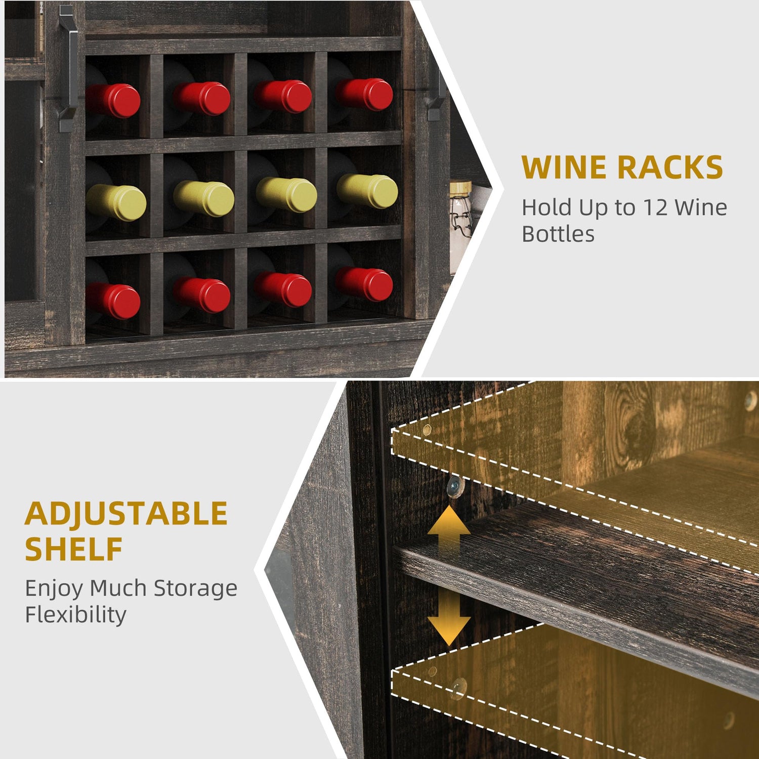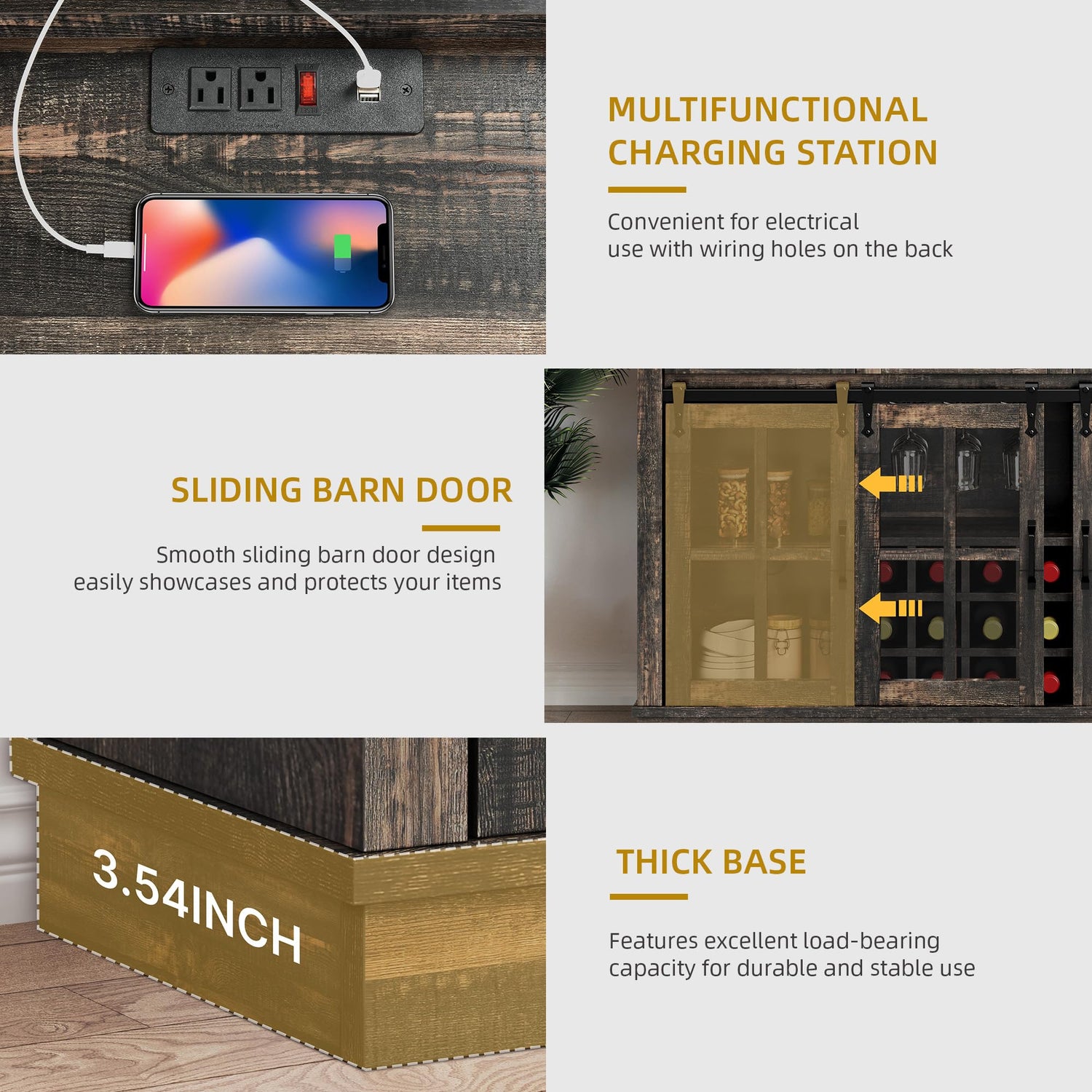 - Farmhouse Chic Appeal: Elevate your living space with our rustic wine cabinet featuring charming sliding barn doors. Whether your decor leans rustic, industrial, vintage, or modern, this versatile coffee station table seamlessly blends in