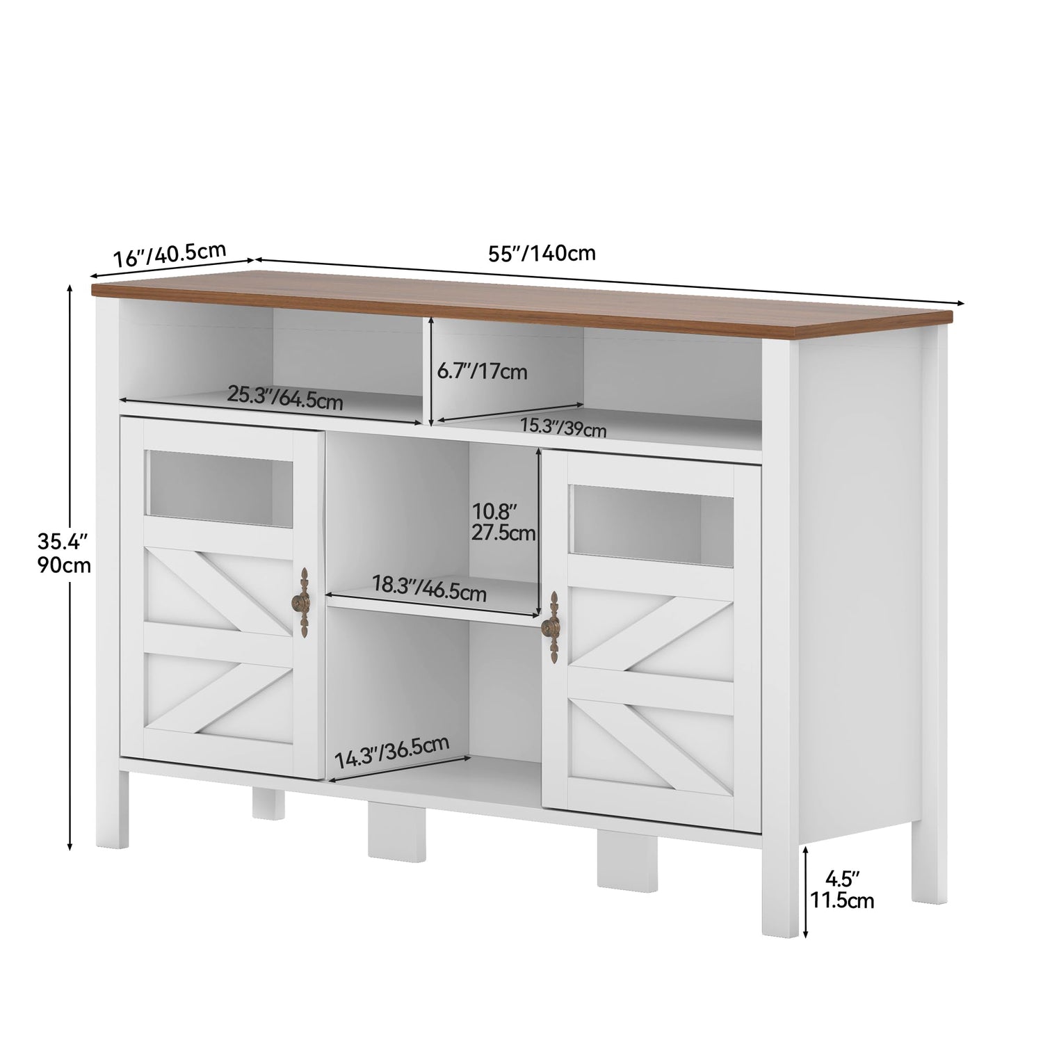 Details: Elevate the ambiance and efficiency of your living space with our captivating YITAHOME farmhouse-inspired buffet sideboard. This stylish storage solution boasts ample organizational options, including open shelves and adjustable interior boards, ideal for neatly housing your tableware, snacks, and more. The generous 55-inch countertop surface offers abundant space for essential items, making it a versatile addition to your kitchen, living room, or any other area in need of functional charm. With its straightforward assembly process and clearly labeled components, this multifunctional piece can effortlessly transform into a chic coffee bar, a sleek TV stand, or a traditional sideboard, tailoring to your unique preferences and requirements.