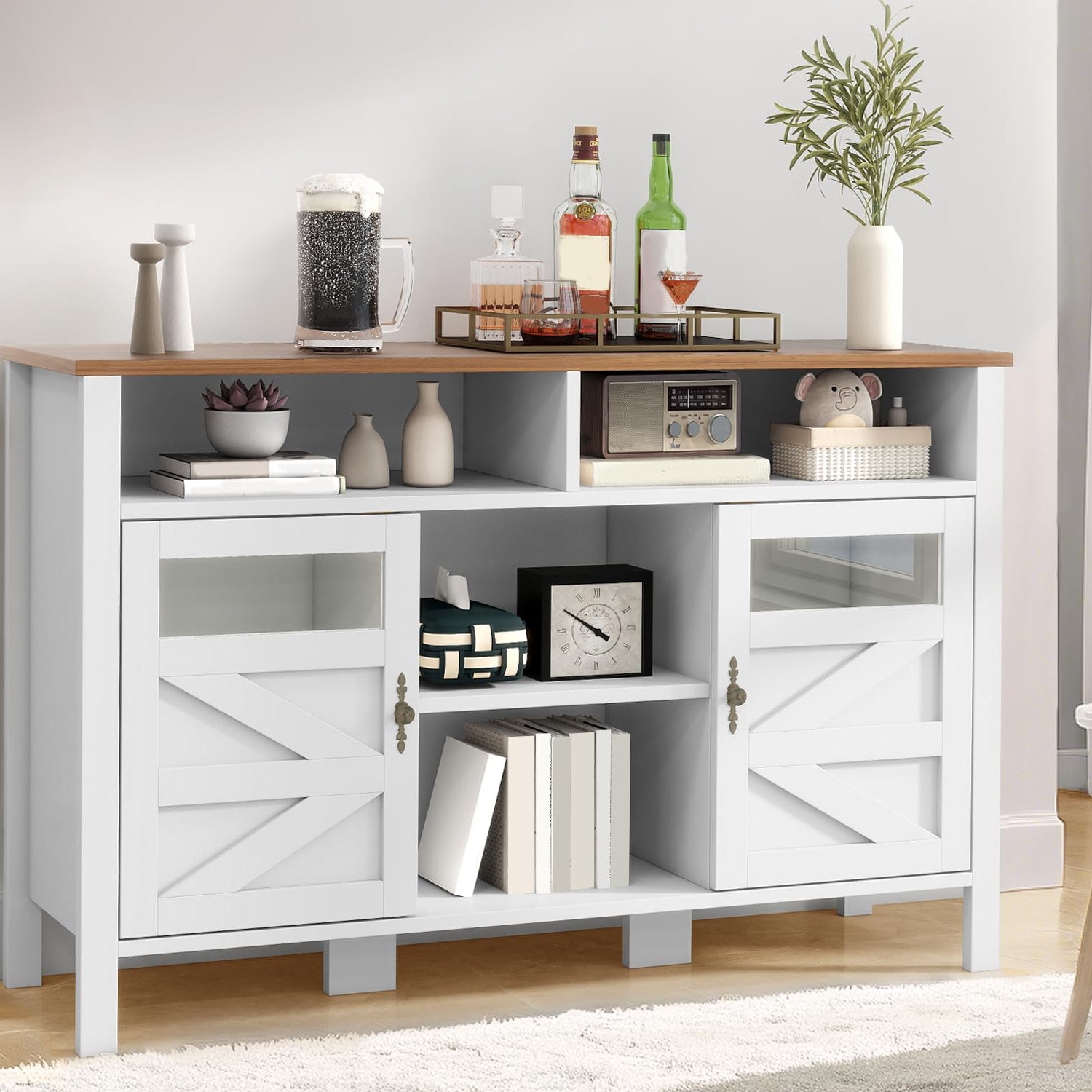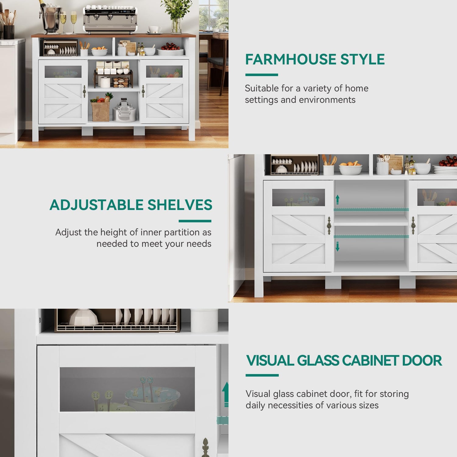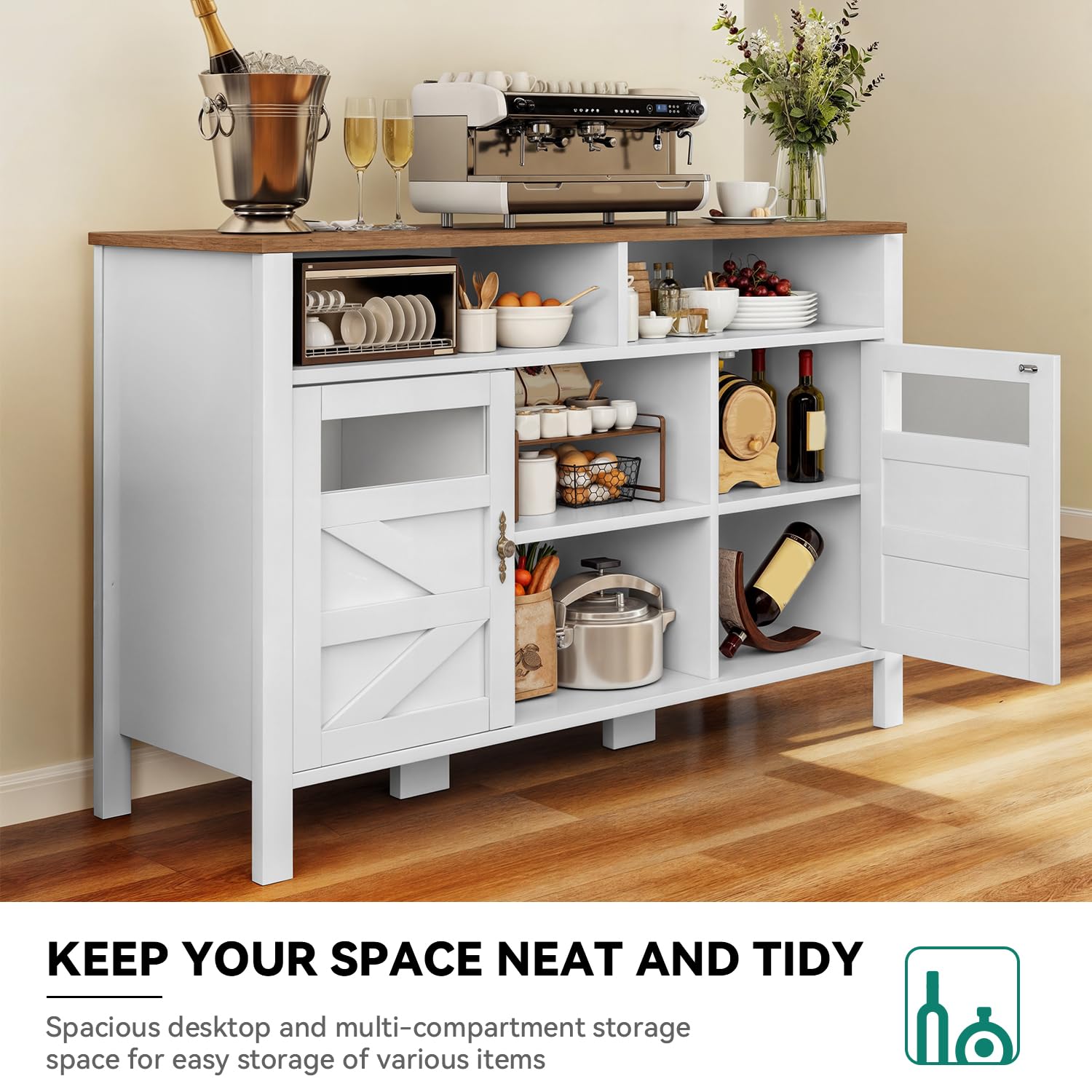 YITAHOME 55'' Farmhouse Buffet Cabinet with Storage, Large Sideboard Cabinet with 2 Doors & Open Storage, Versatile Coffee Bar Table for Kitchen & Living Room (White)