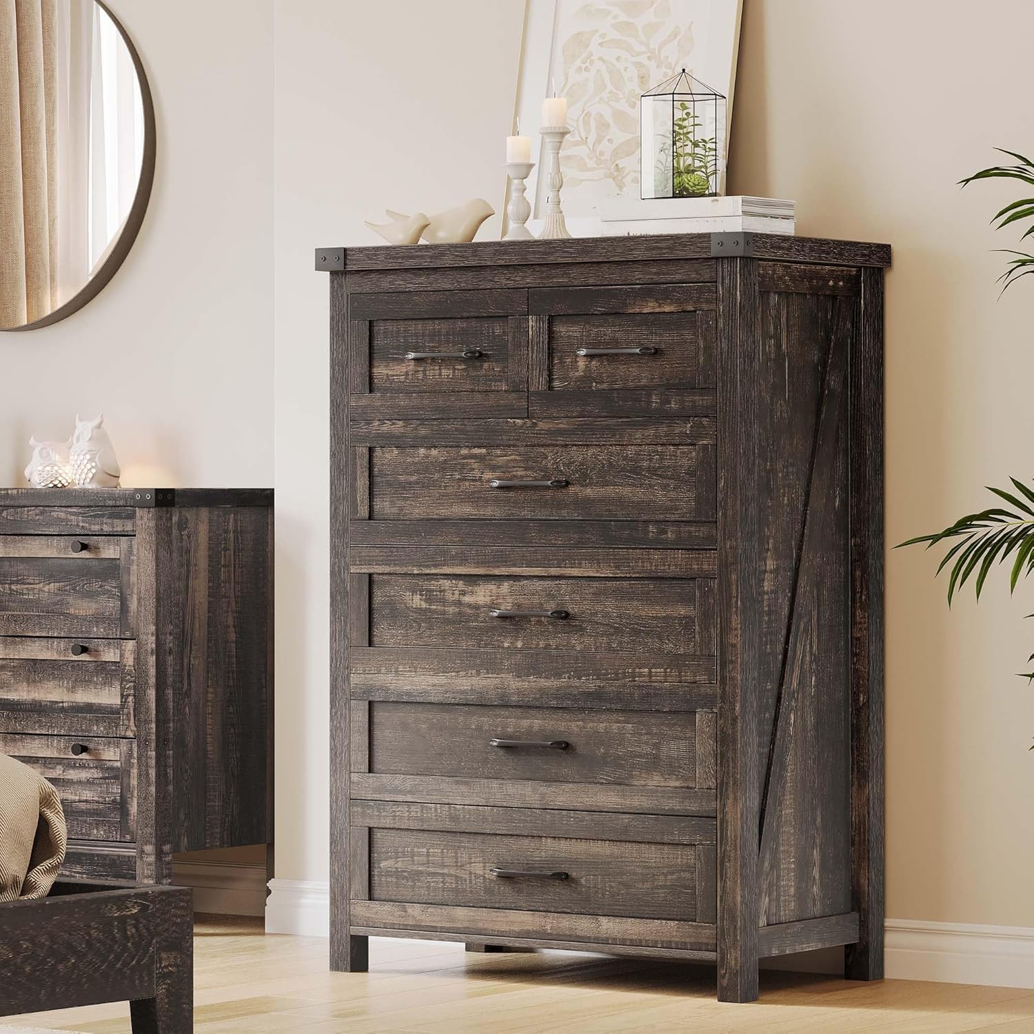 - Versatility for Any Room: This 6-drawer dresser blends rustic charm with modern utility, suitable as a living room console, hallway organizer, or bedroom staple. Showcase art, store linens, or keep daily essentials out of sight but close at hand.