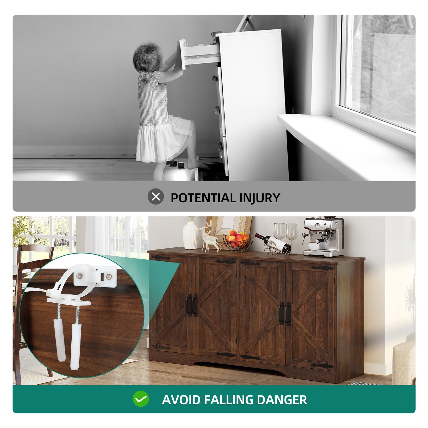 YITAHOME 62" Farmhouse Buffet Cabinet with Storage, Large Coffee Bar Cabinet, Kitchen Sideboard with Adjustable Shelves for Living Room, Entryway, Kitchen, Dark Walnut