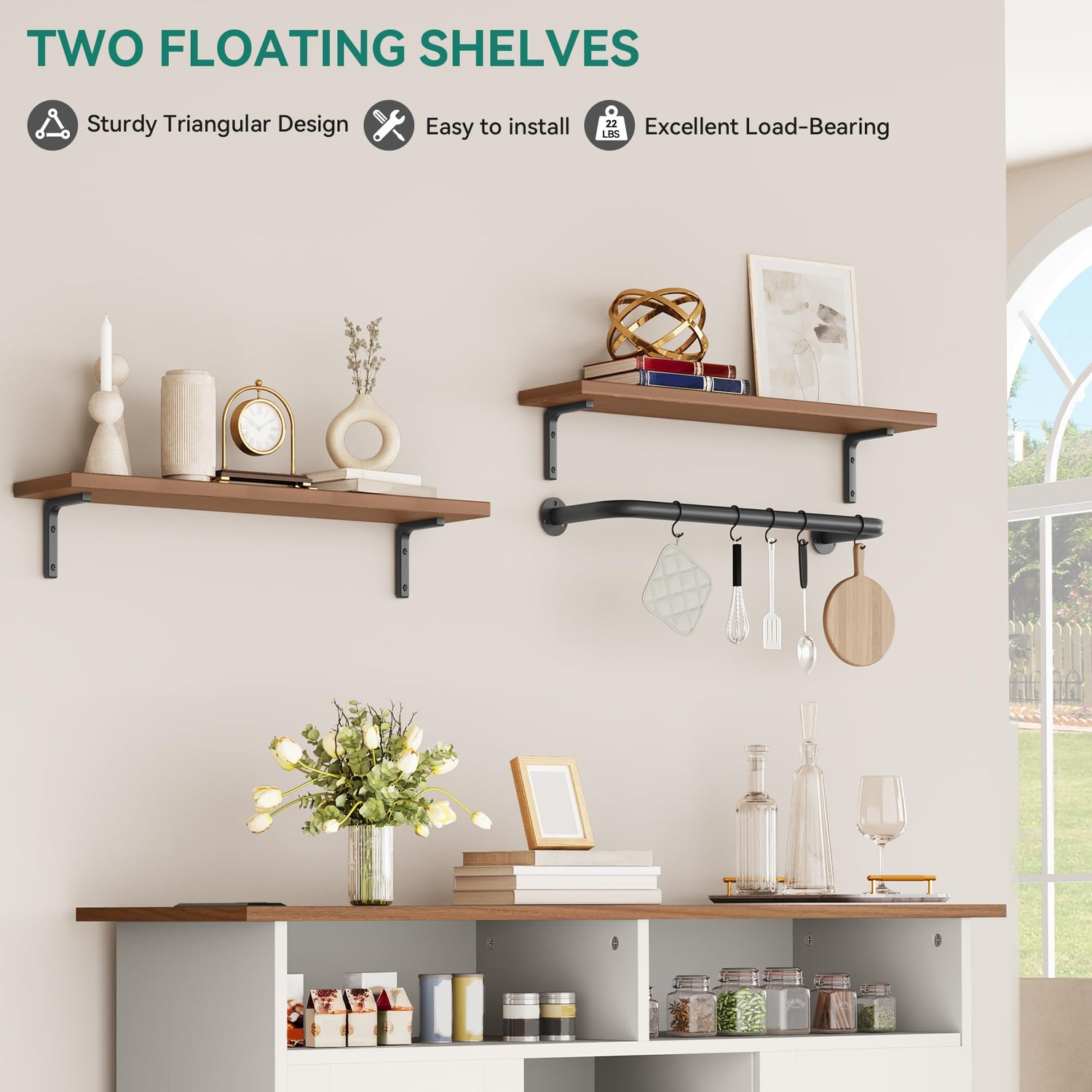 - Wall-Mounted Shelves: Includes two floating shelves and a hanging rod for mounting on the wall, providing extra space for small bottles, jars, cups, and kitchen accessories