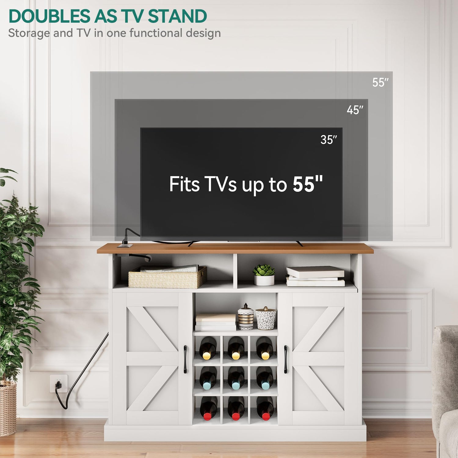 YITAHOME Buffet Cabinet, 47" Farmhouse Coffee Bar with Power Outlet, Floating Shelves, Multi-Functional Storage Sideboard Cabinet for Kitchen and Living Room (White)