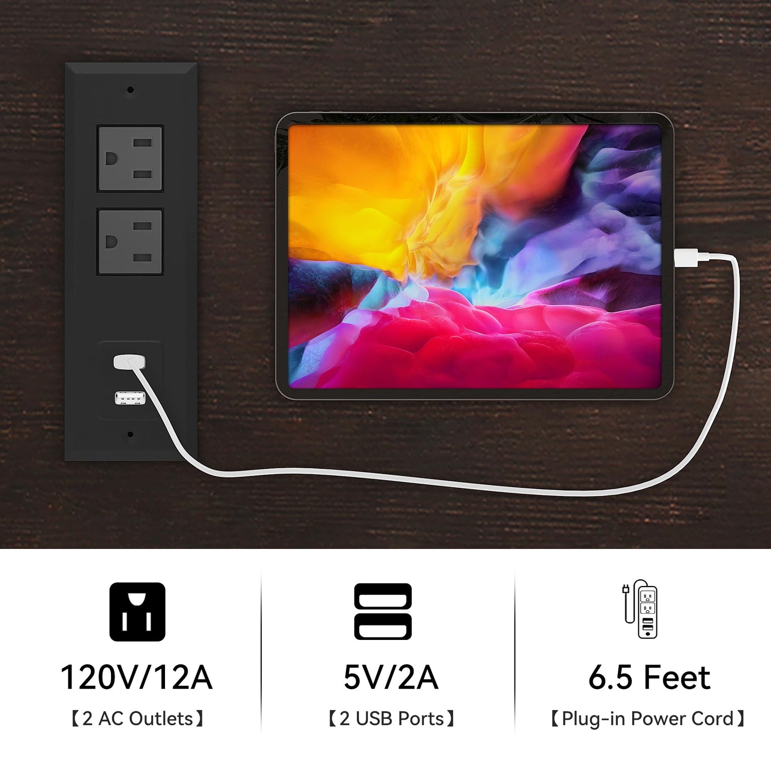 • Integrated Power: Equipped with a practical power outlet featuring 2 USB ports and 2 standard 3-hole sockets, allowing convenient charging of electronic devices such as coffee makers, phones, and tablets
