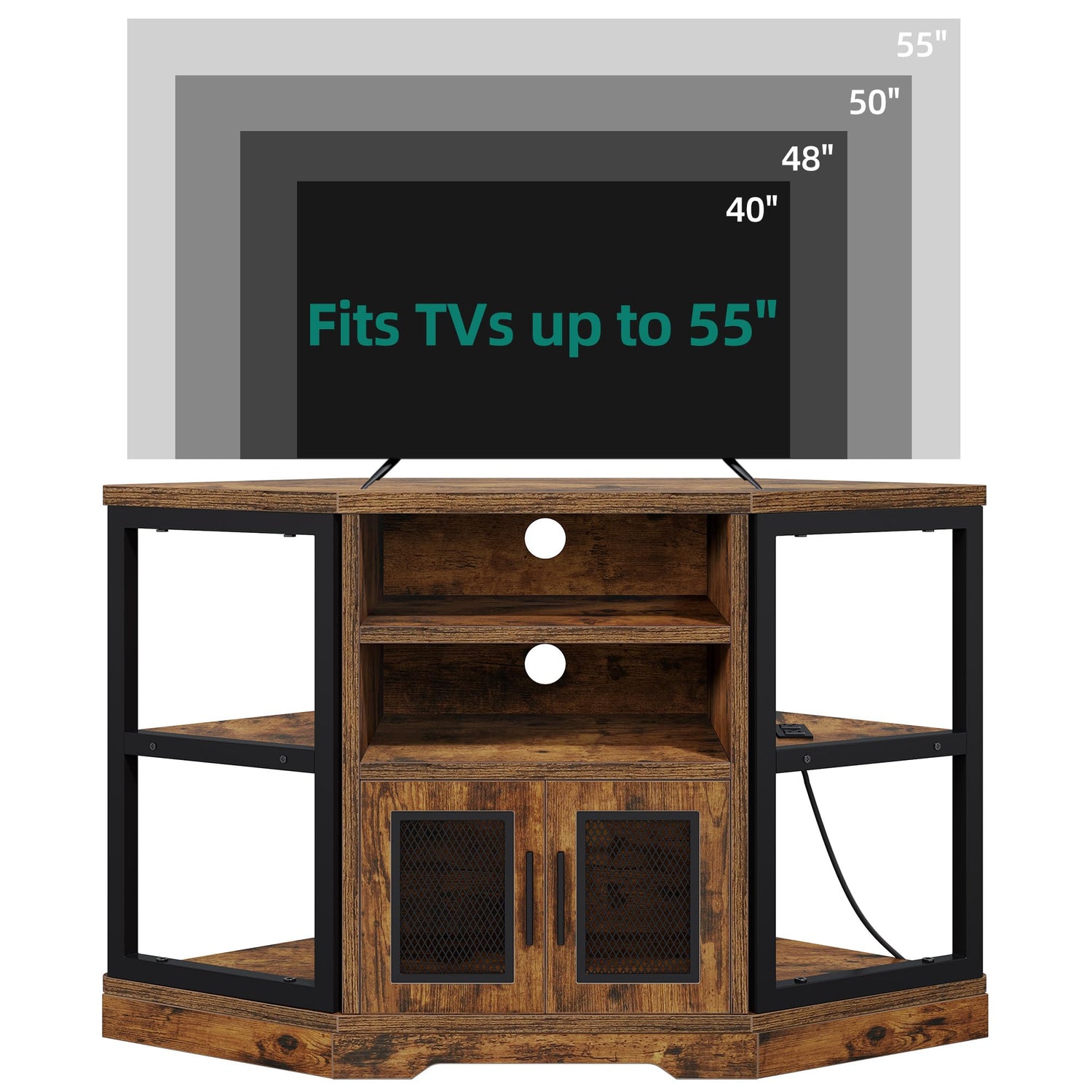 YITAHOME Corner TV Stand for TVs up to 55 Inch with Power Outlet, Modern Farmhouse Entertainment Center, Wood TV Media Console with Storage Cabinets Shelves for Living Room, Retro Brown