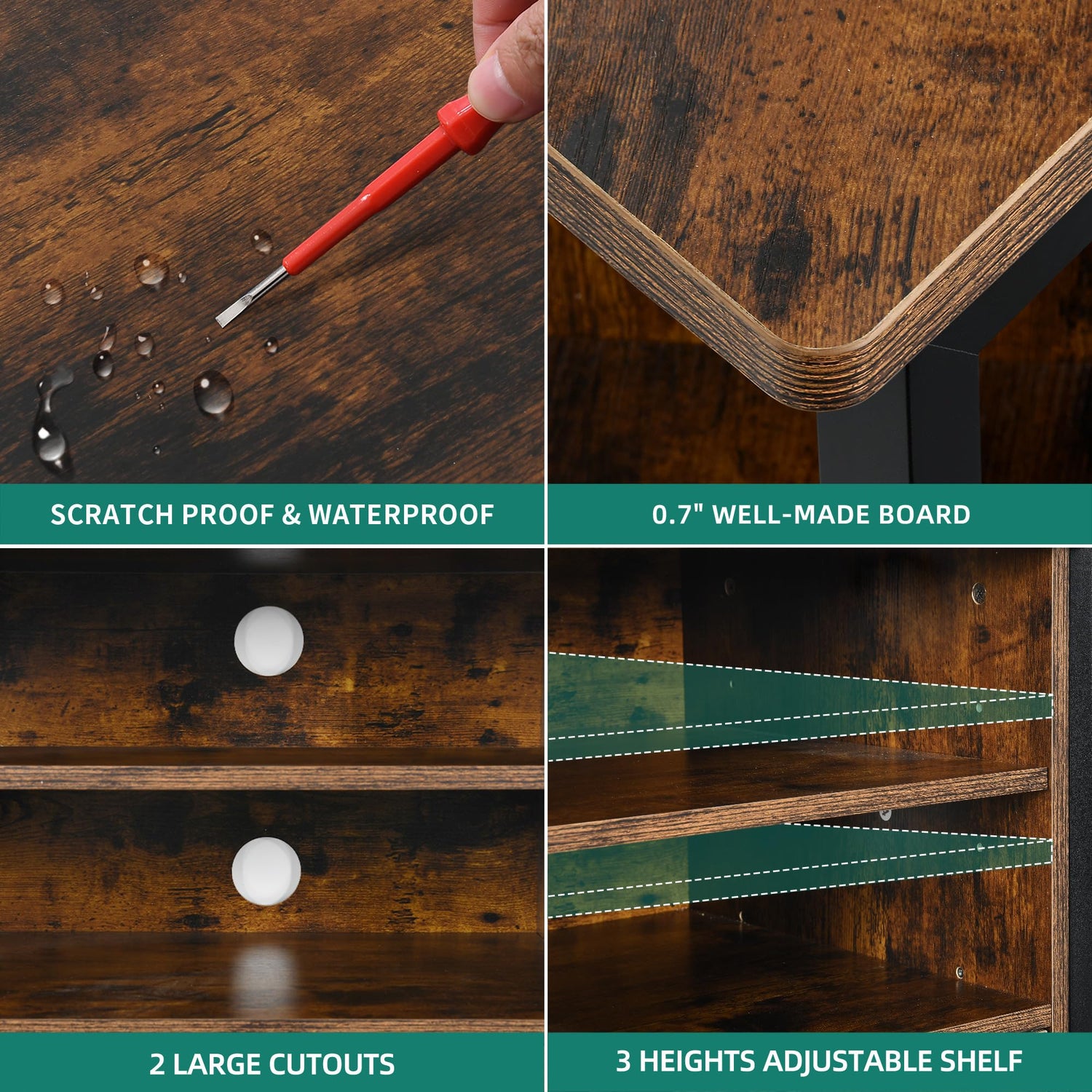 - TV media console shelf with power outlet and USB ports: The entertainment center TV stand shelf with power outlets built-in 2 USB ports and 2 standard plug outlets, so it can meet the needs of different equipment, which is convenient to charge your TV, DVD, WiFi router, and etc. This is a real combination of stylish and functional