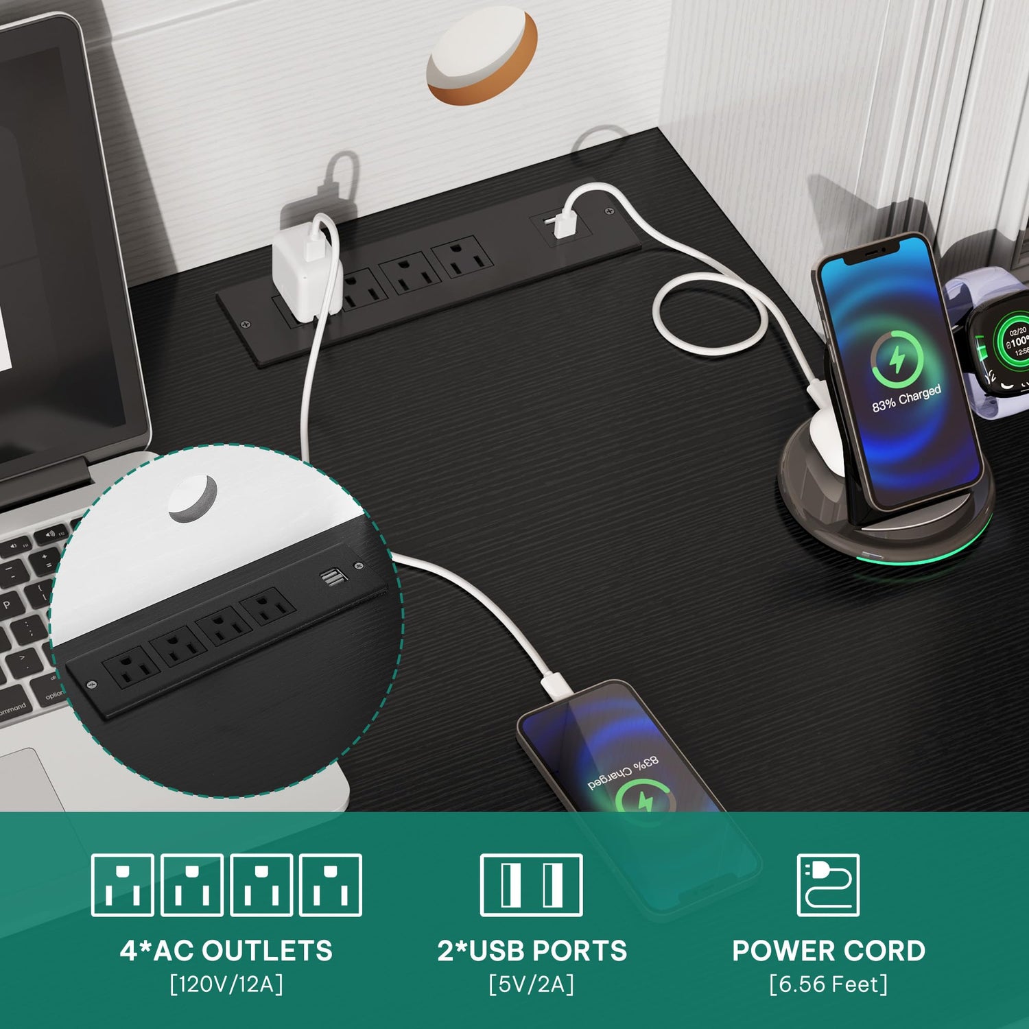 • Built-in Charging Station: This executive desk with power outlet features 2 USB ports and 4 power outlets with a 6.56ft cord keeping your computer, laptop, phone, tablet, printer, gaming gear and other devices charged for seamless work or gaming. Designed for today’s tech-savvy work environments