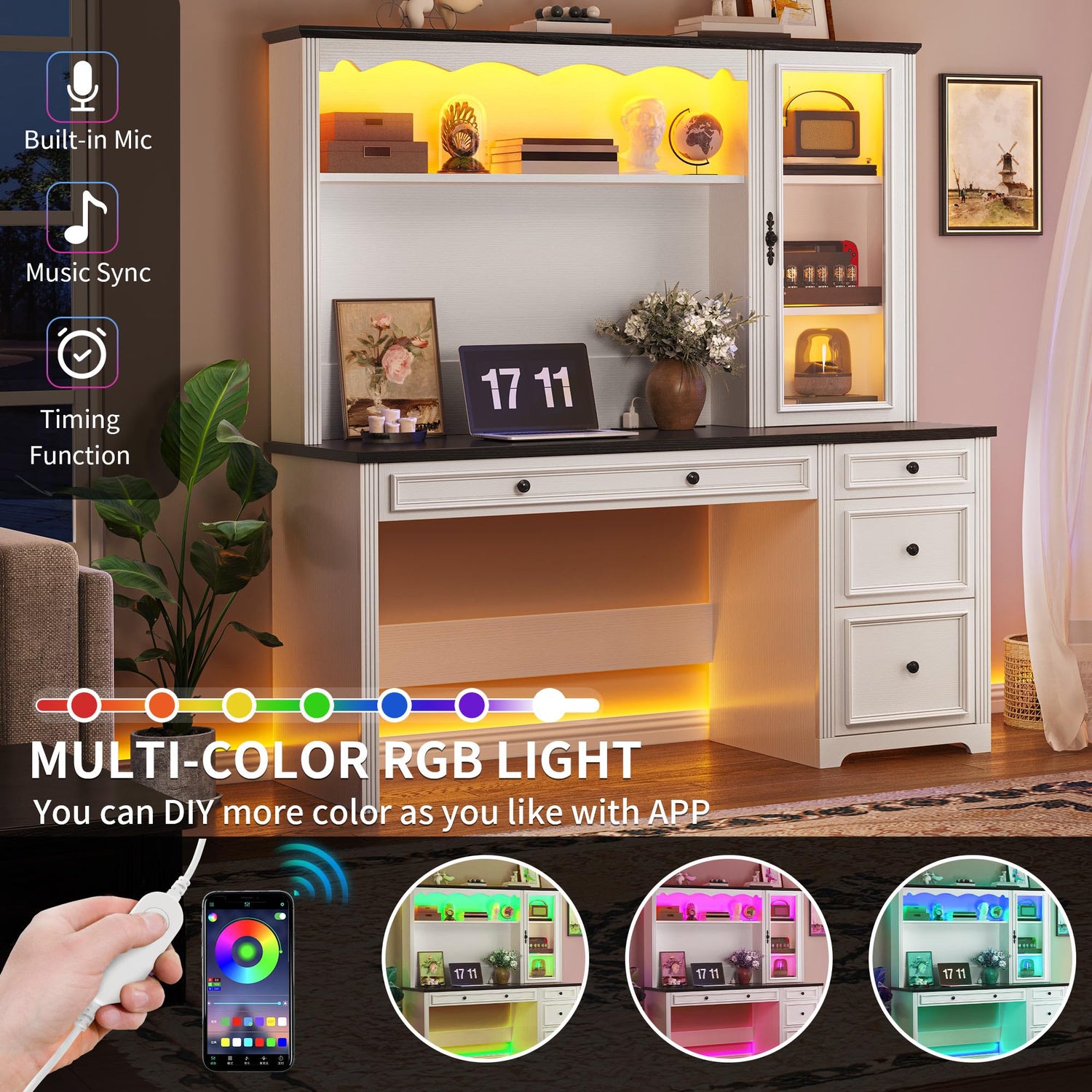 • Cool Smart RGB LED Light Strips for Gaming & Work: Our executive computer desk with drawers features a beautiful RGB LED light strip, flexibly controlled by a phone app or light strip switch, and you can customize any color you like via app. Plus, choose from various modes including music sync,built-in Mic and timers functions. Upgrade your workspace with our sleek, customizable LED light strips-designed to enhance productivity, creativity, and relaxation at your executive desk, gaming setup, or home office