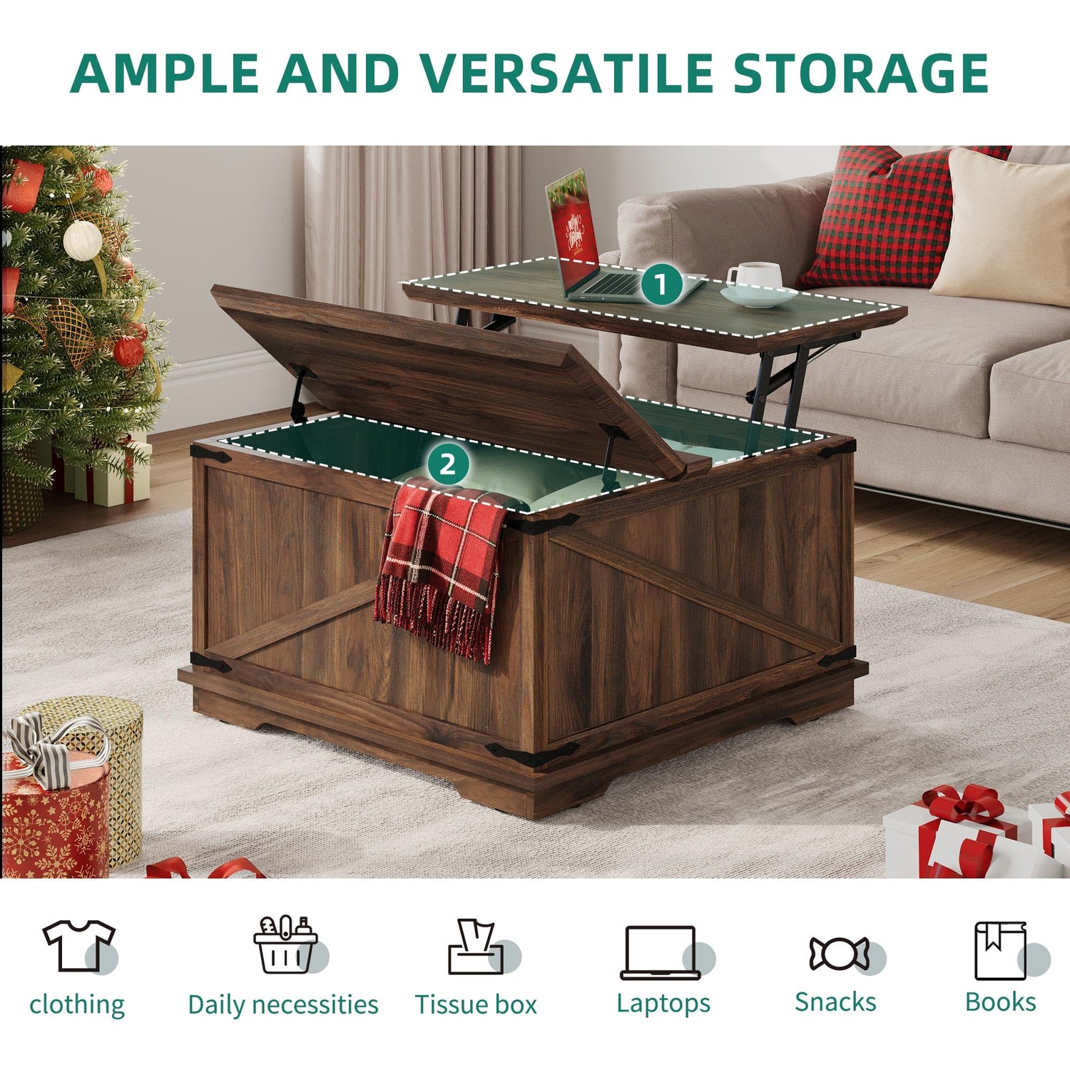 YITAHOME Farmhouse Lift Top Coffee Table for Living Room, Square Wood Coffee Table with Large Hidden Storage Compartment, Rustic Cocktail Table with Hinged Lift Top for Home Office, Reclaimed Barnwood