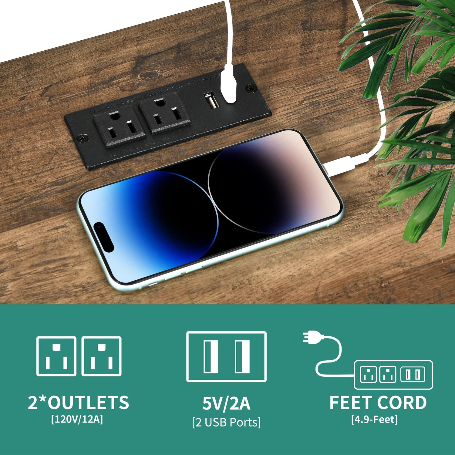 - Convenient Charging Station: With 2 AC outlets & 2 USB ports, along with cable management for a 5.9ft long power supply cord, it is convenient to charge your phone, tablet, lamp, etc