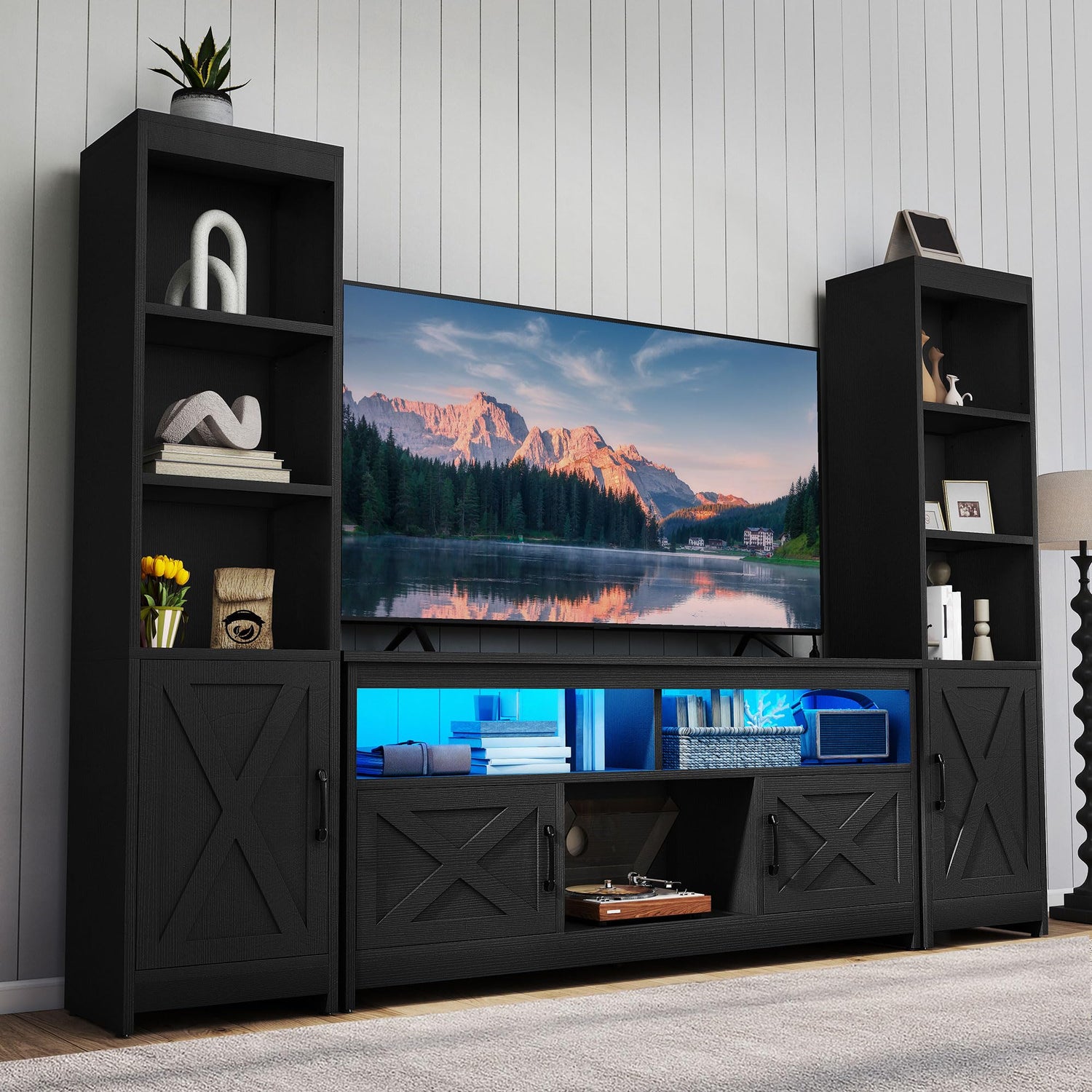 YITAHOME Farmhouse TV Stand for 65inch TV, Entertainment Center with Storage, Adjustable LED Lights & Power Hub, TV Cabinet with Bookshelves for Living Room/Apartment, Black