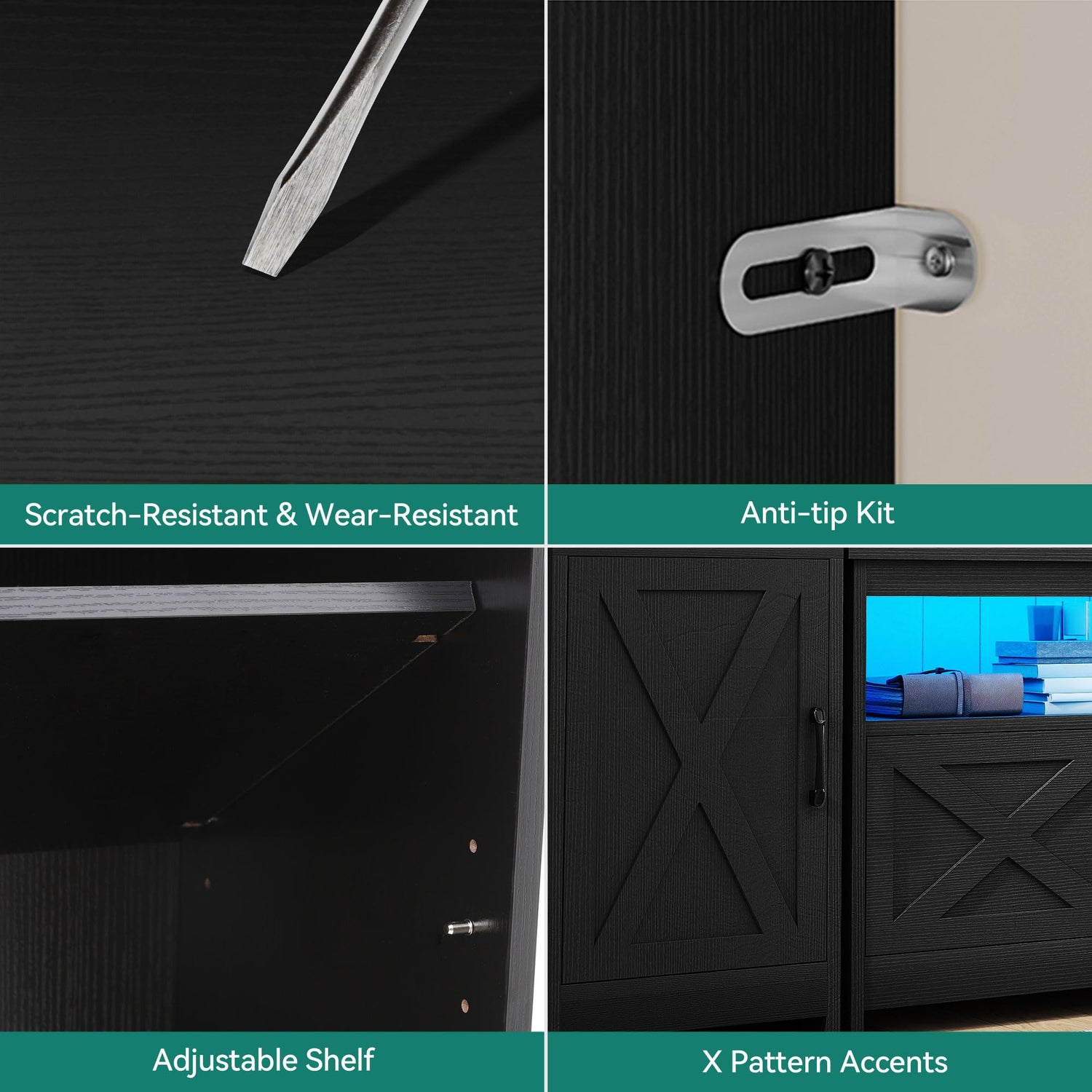 - Sturdy Material & Easy Assembly: Built from sturdy engineered wood and supported by foot nails, this led tv stand with storage ensures durability and stability. Non-tip kits keep it secure, and clear instructions make assembly fast