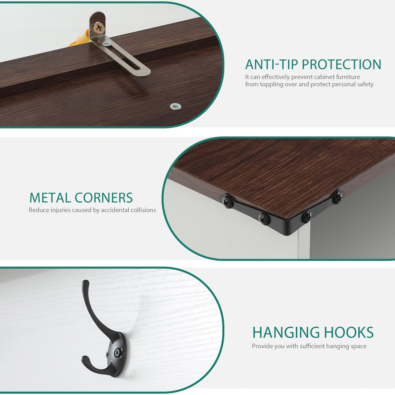- Ample Storage for Shoes & Accessories: Featuring 8 spacious shoe shelves that can hold up to 16–20 pairs of shoes (depending on size). Comes with 9 double-hook hangers for coats, hats, scarves, keys, and more.
