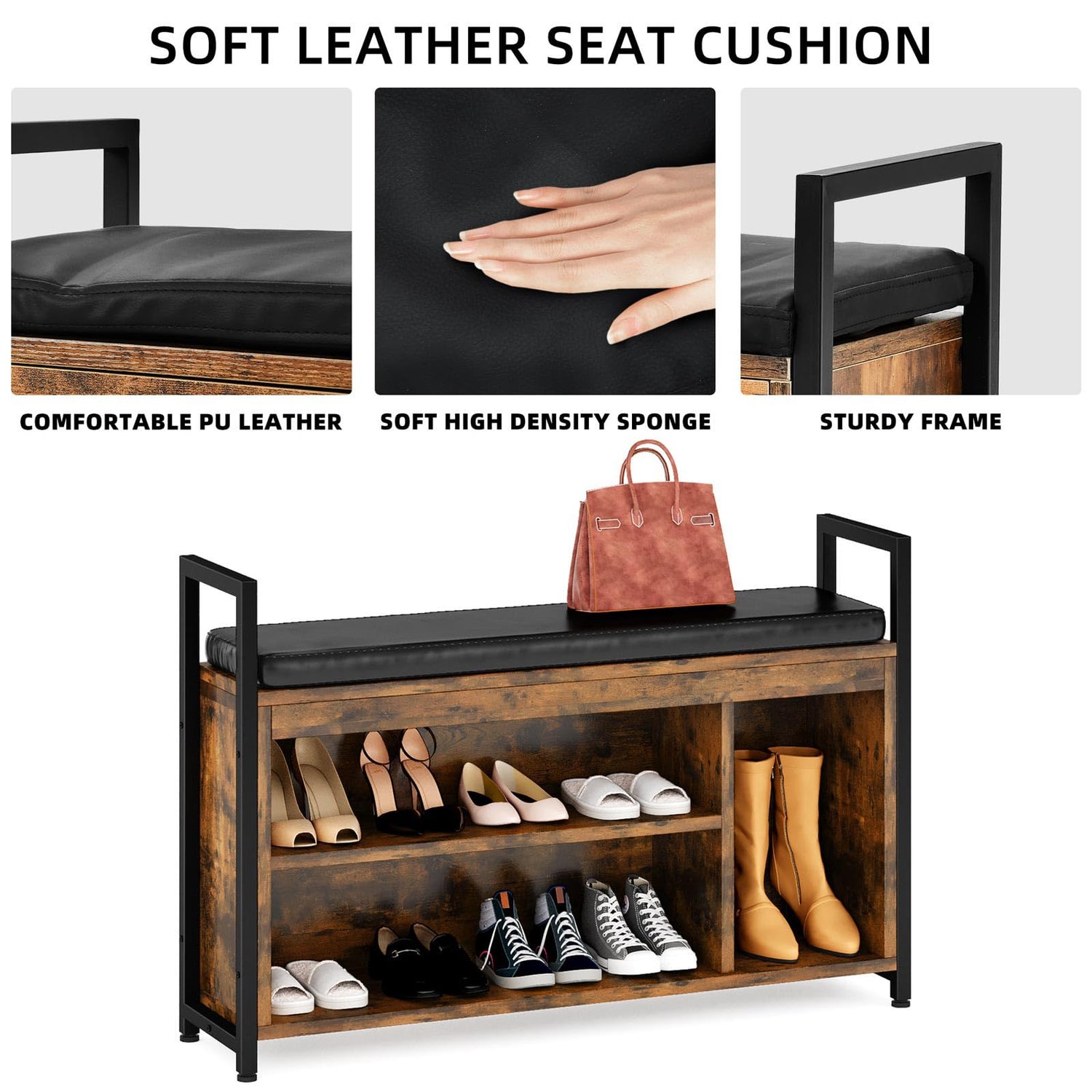 • Rustic and elegant: YITAHOME wall coat rack with hooks, shoe storage bench with comfortable leather cushions, rustic warm particle board, and black metal frame-fusion together add more charm and complement your home decor