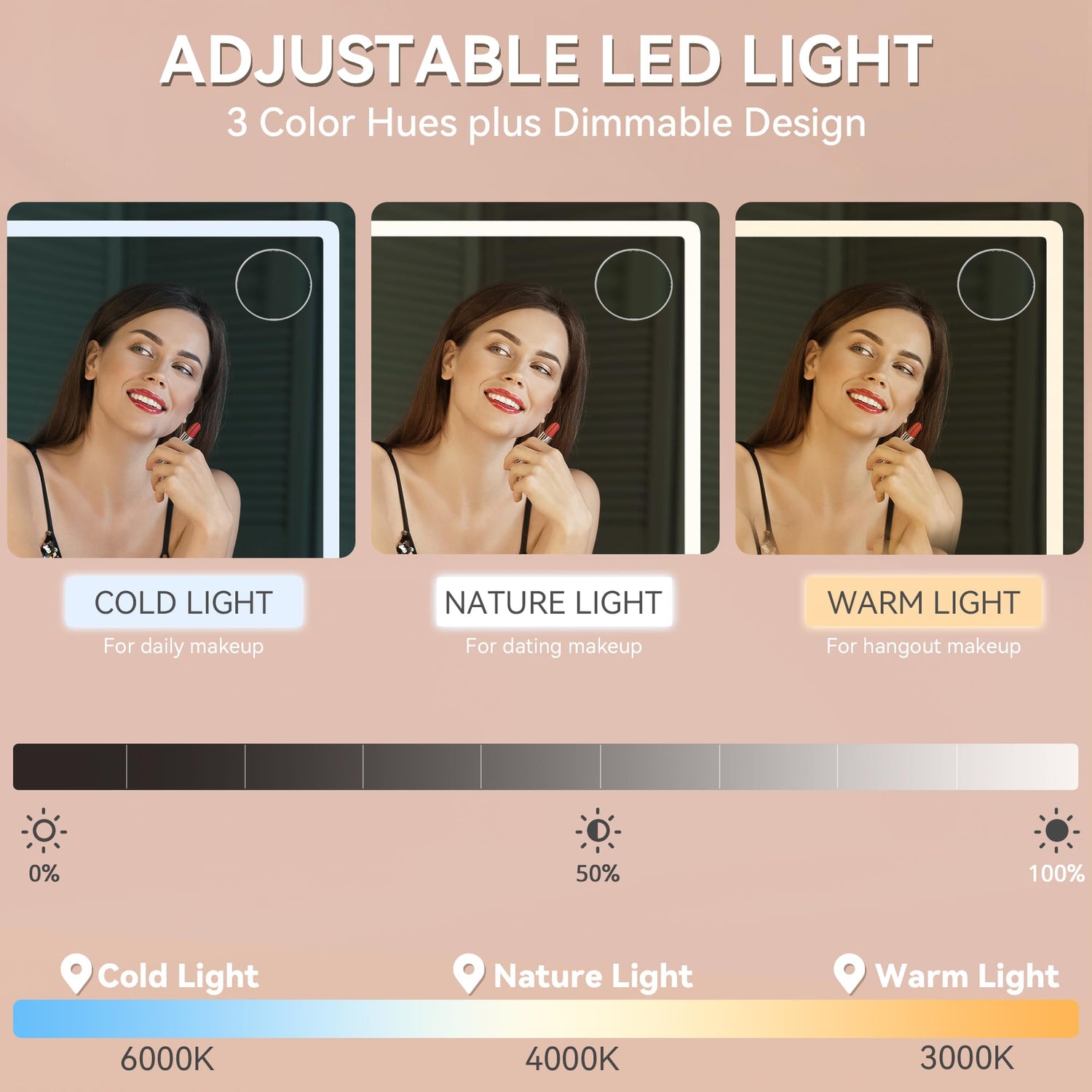 - Wide Mirror with Custom LED Glow: Get ready like a pro with the extra-large 35" mirror and built-in LED lights. Tap to switch between cool white, warm white, or warm yellow, and press longer to adjust brightness for the nice look-day or night
