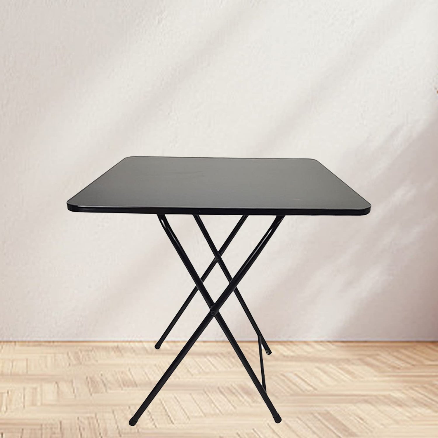Item Name: Foldable Table Material: MDF, Stainless Steel Features: Heavy Duty, Square, Strong Load Bearing Size Details: 60cm x 60cm x 70cm/23.62" x 23.62" x 27.56" (Approx.)