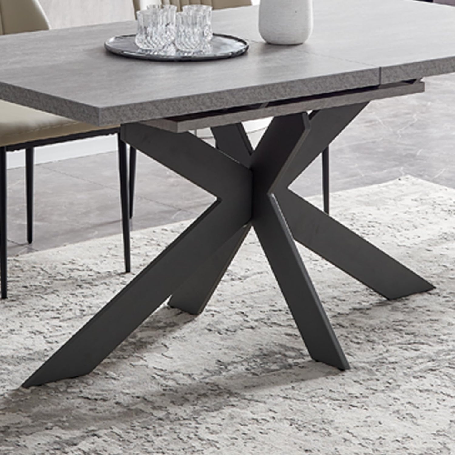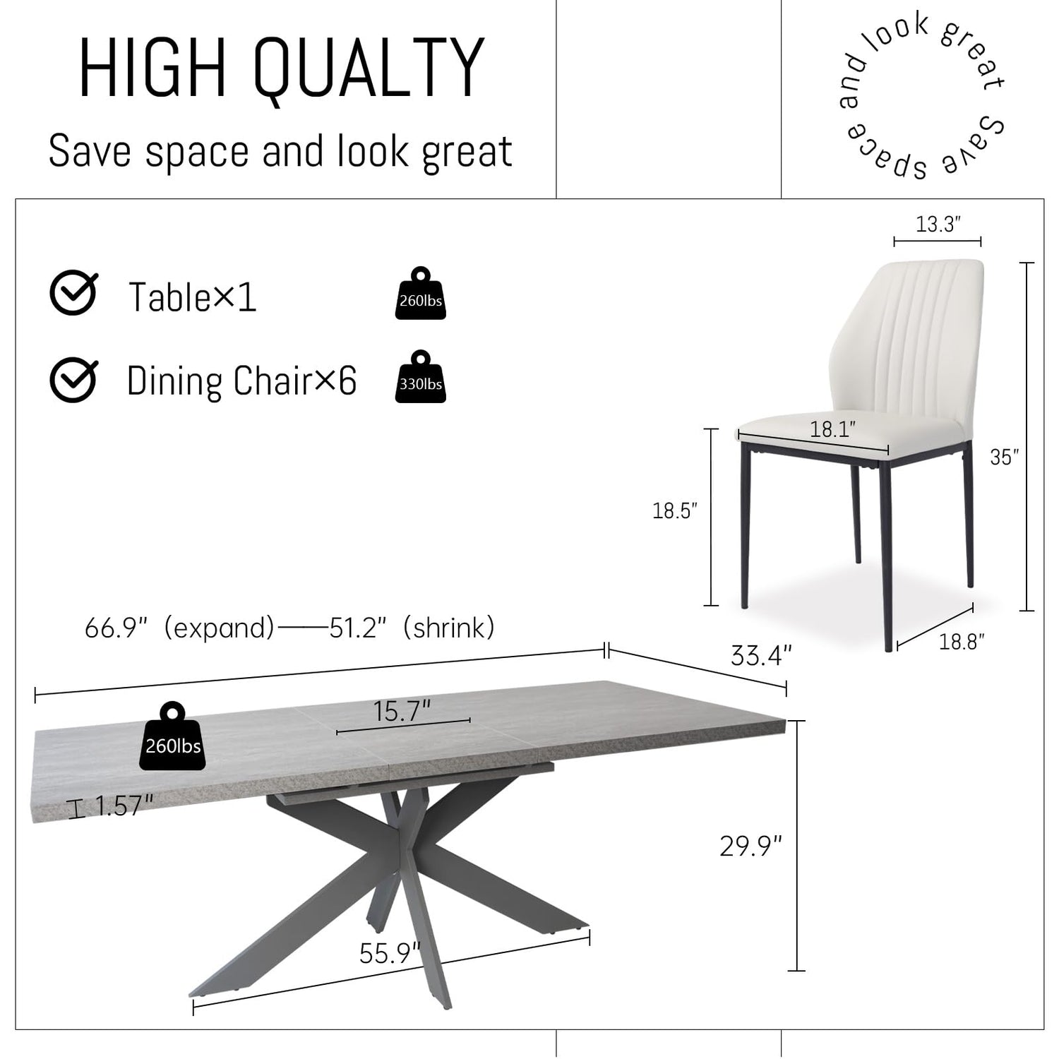 ZckyCine 6-8 People Modern Dining Table Rectangular Kitchen Dining Table Space-Saving Expandable Dining Table Metal Frame (Gray Table + 6 White Chairs)