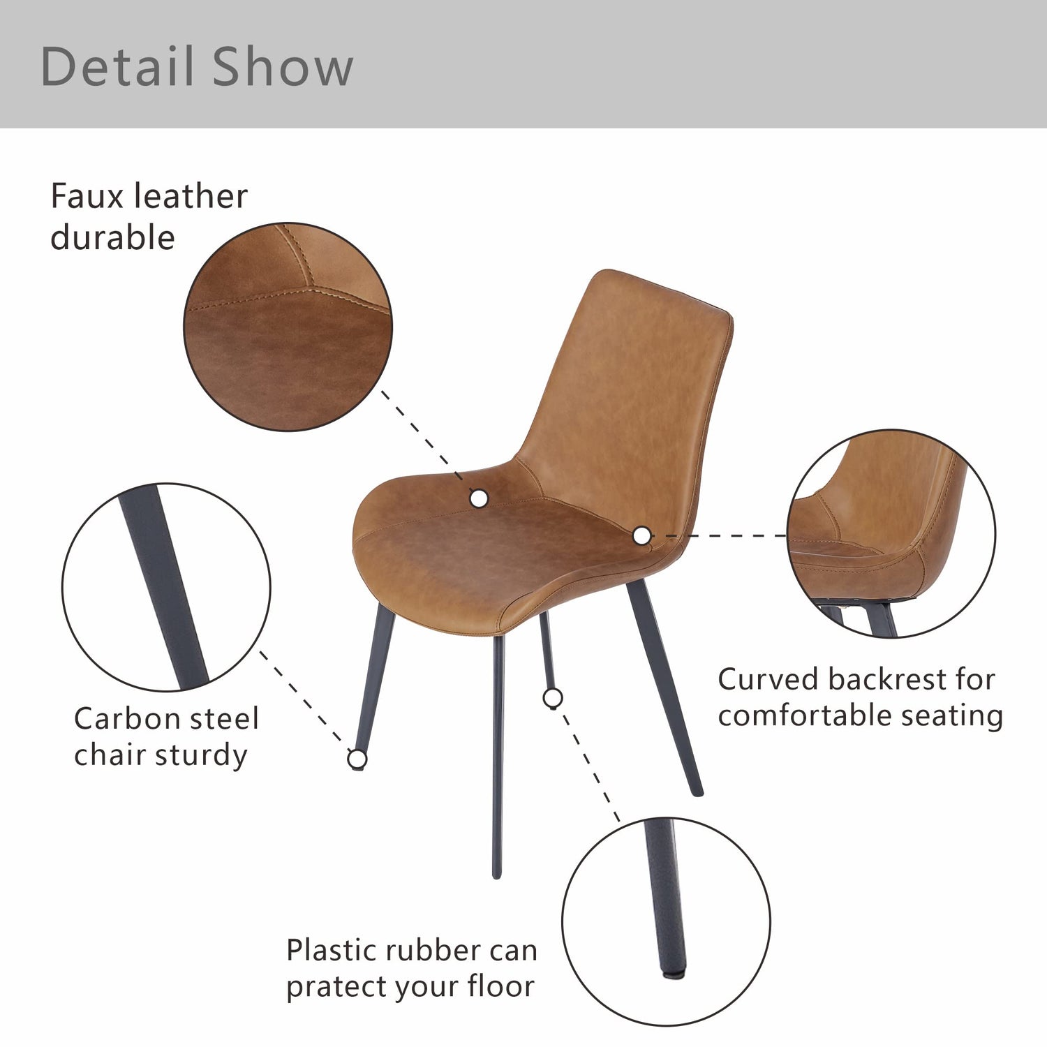 - Premium Leather Upholstered Dining Chairs: Our dining chairs are cushioned with premium faux leather and high resilient foam. The dining chairs have metal tubular legs that sturdily support the seat with a high weight capacity. Maximum weight-bearing capacity: 300 lbs. The seat and backrest of the stool are ergonomically curved, softer and thicker.