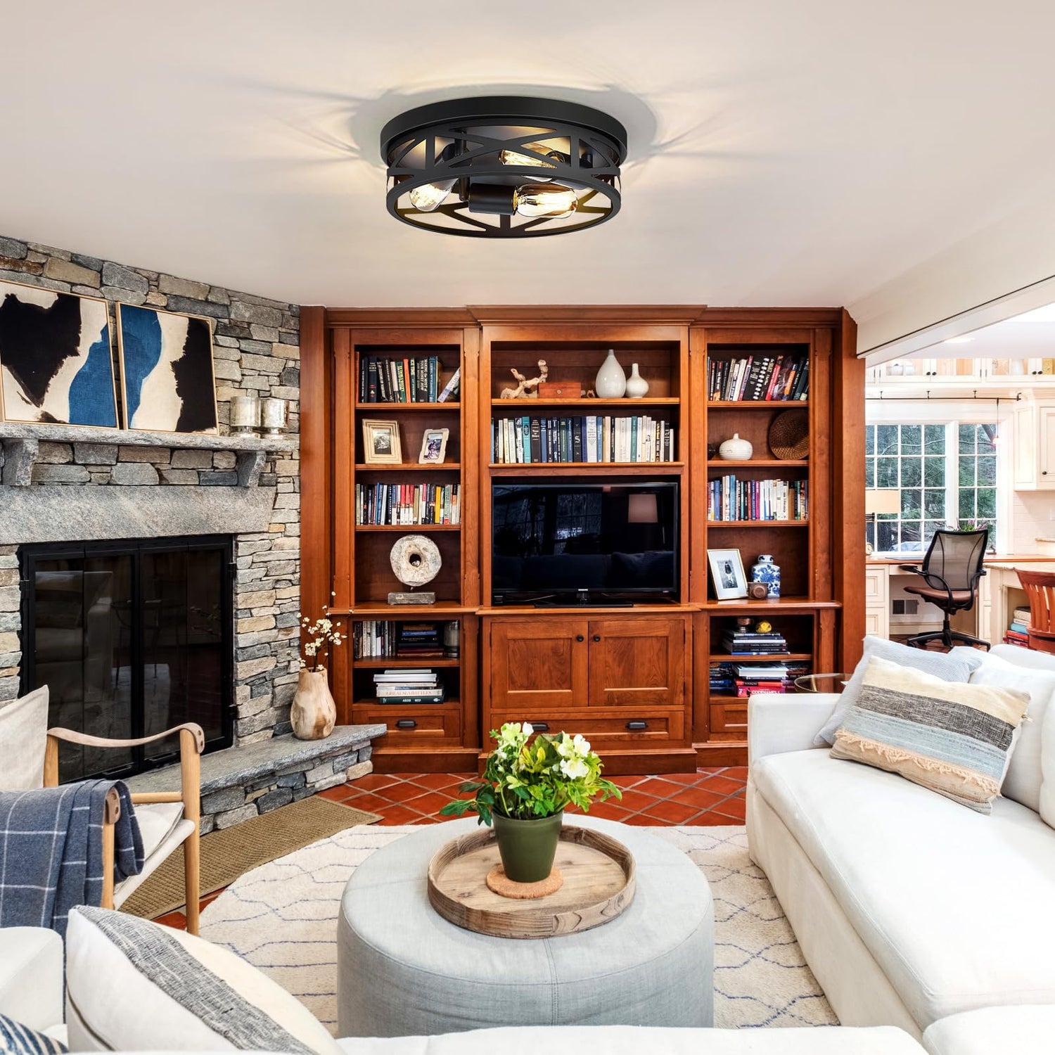 - 【Premium Flush Mount Ceiling Light Design】Premium metal-coated materials ensure durability and corrosion resistance, black finish adds timeless charm to traditional designs, and glassless design is easy to clean and replace bulbs, adding a touch of farmhouse charm to your space!