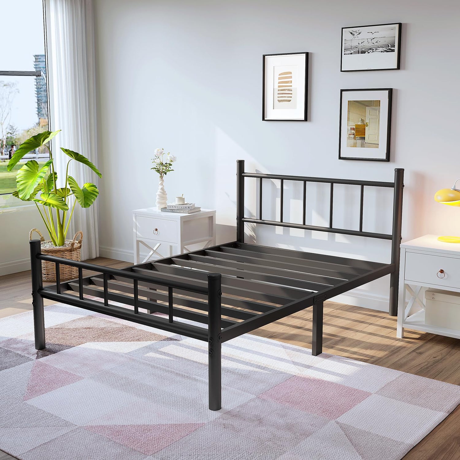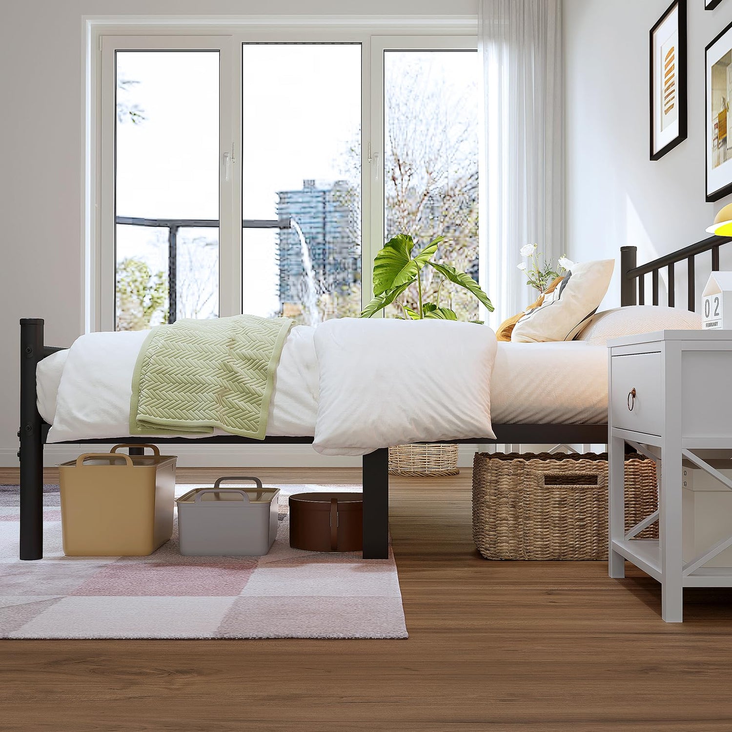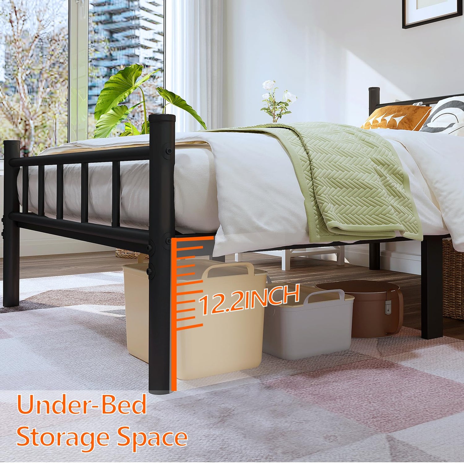 zizin Twin Size Metal Bed Frame with Headboard & Footboard 14 Inch Metal Platform Mattress Foundation Support with Steel Slat, Under Bed Storage, No Box Spring Needed